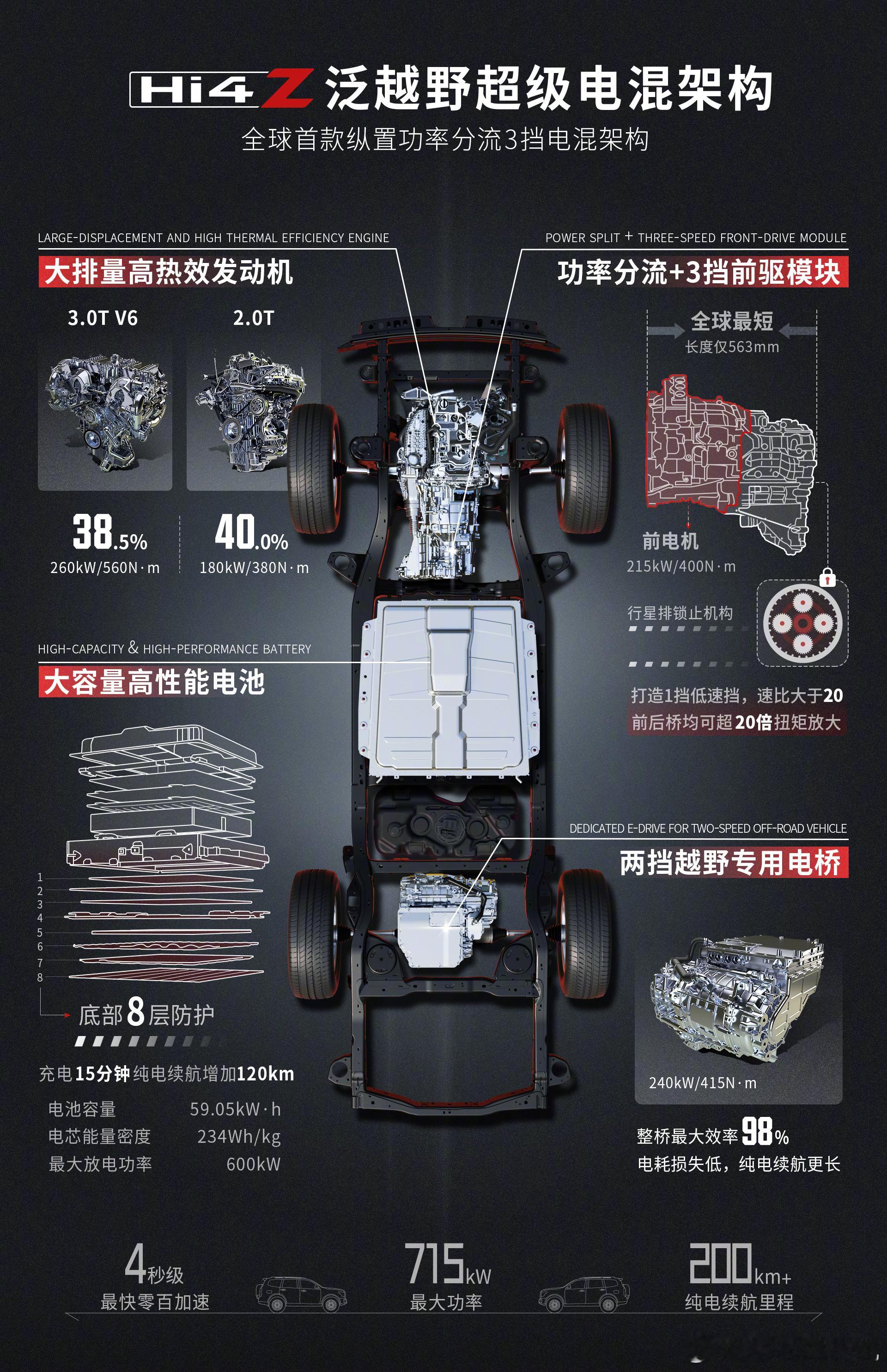 能拿这个奖,核心还是Hi4真的解决了以前混动领域的老大难问题。早年间混动四驱要么结构复杂、价格比两驱贵出几万,要么动力和油耗顾此失彼,Hi4直接突破了双电机串并联的技术瓶颈,用更巧的布局实现了“两驱油耗、四驱性能”,这对普通消费者来说太实在了。更关键的是它不搞单一技术,而是做成了家族体系:城市通勤有基础版Hi4,省油好开;想玩硬越野有Hi4-T,机械四驱加三把锁,连环塔拉力赛的沙漠戈壁都能拿下,填补了国内混动硬派越野的空白;甚至3.0T大排量发动机都靠专属增压器做到了全球最高热效率,解决了“排量大就费油”的老问题。