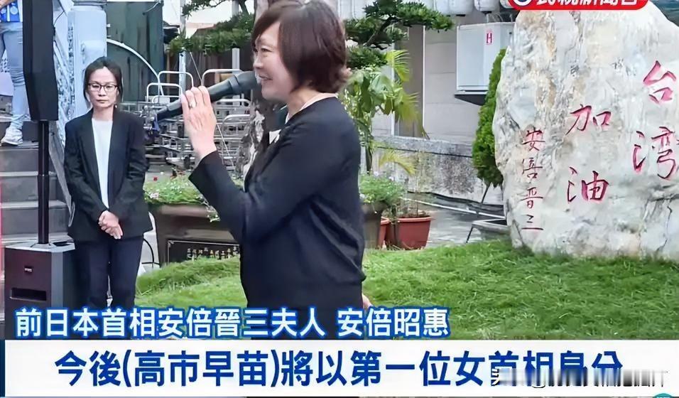 安倍昭惠再访台岛,并在高雄市政府为安倍晋三建的铜像前激励高市早苗,勉励高市早苗好好干,安倍晋三在天国很高兴看到高市早苗成为日本历史上第一位女首相!