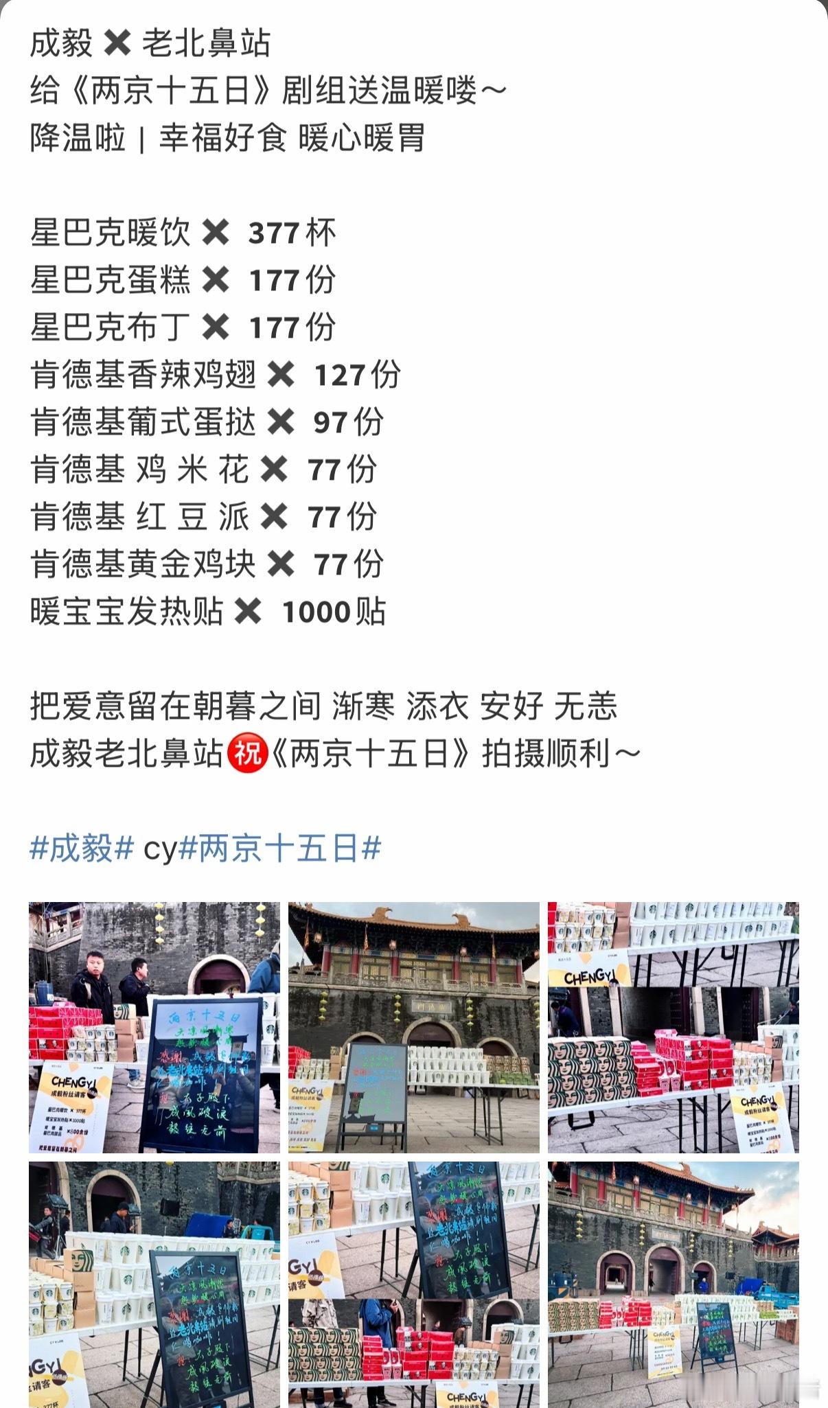 成毅粉丝请《两京十五日》剧组工作人员喝咖啡吃甜品![抱一抱]