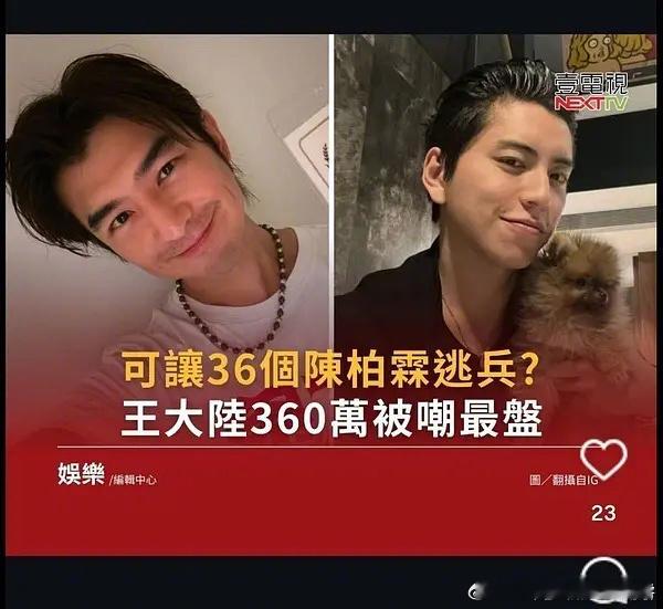 王大陆花了360w台币(大概80多万rmb),陈柏霖只花了10w新台币(大概2w多rmb),台媒说1个王大陆等于36个陈柏霖