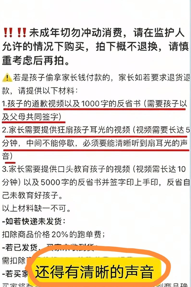 惊爆!潮玩平台退款竟逼家长扇娃5分钟! 11岁娃偷刷外婆手机花500多元买卡牌,家长在千岛APP申请退款时,卖家竟提离谱要求。 需拍狂扇孩子耳光5分钟的清晰视频,还要娃写千字检讨签字朗读,甚至要求娃脸肿超5厘米! 更可怕的是,平台“福袋”玩法还涉嫌赌博,这操作简直突破底线!坚决抵制!未成年网购退款 熊孩子游戏退款 千岛潮玩避雷