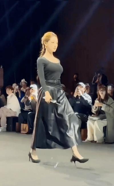 感觉她真的很想抓住虞书欣下滑这个空间 穿保暖内衣走秀扭成这样 适得其反了 腰间赘肉、体态都成了诟病 还有不少人在评论区提醒她骨盆前倾 说实话前不前倾我不知道 但是这几步真的走的很扭捏 用力过猛就算了 结束的造型更是一言难尽 不知道为什么这两年总有演员想闯模特圈 非要去献丑一番博出位 不过目的确实也是快 虽然不全是正向的热度