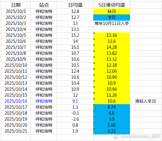 另外在这股冷空气到来前,西宁10月1日、乌鲁木齐10月2日(备注,国家气候中心标准按照均温稳定低于10℃为入冬,地方标准按照均温低于0℃为入冬,地方标准未入冬)、哈尔滨10月6日、长春10月8日,已经入冬。