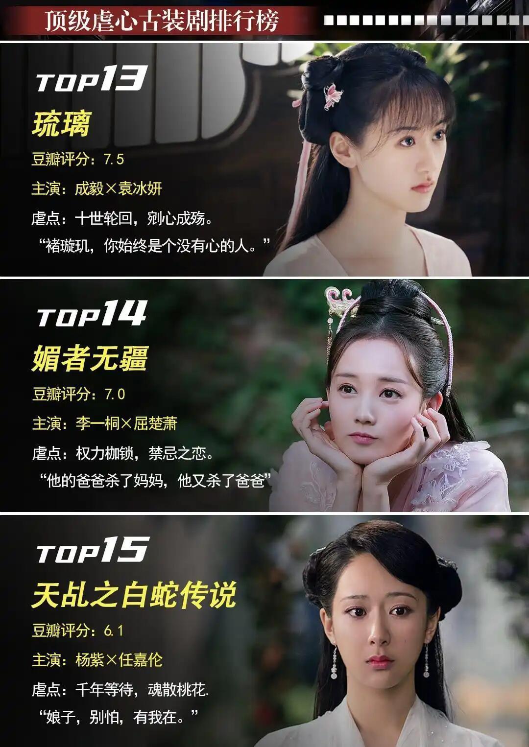 《东宫》《周生如故》《古相思曲》《鹤唳华亭》《步步惊心》《大唐荣耀》《花千骨》《仙剑奇侠传》《三生三世十里桃花》《沉香如屑》《长月烬明》《香蜜沉沉烬如霜》《琉璃》《媚者无疆》《天乱之白蛇传说》