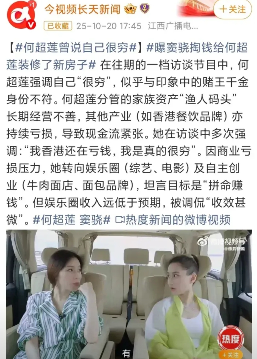 因为她说过她其实很穷,分管的家族产业都是亏本的,所以她才想进娱乐圈赚自己的钱。