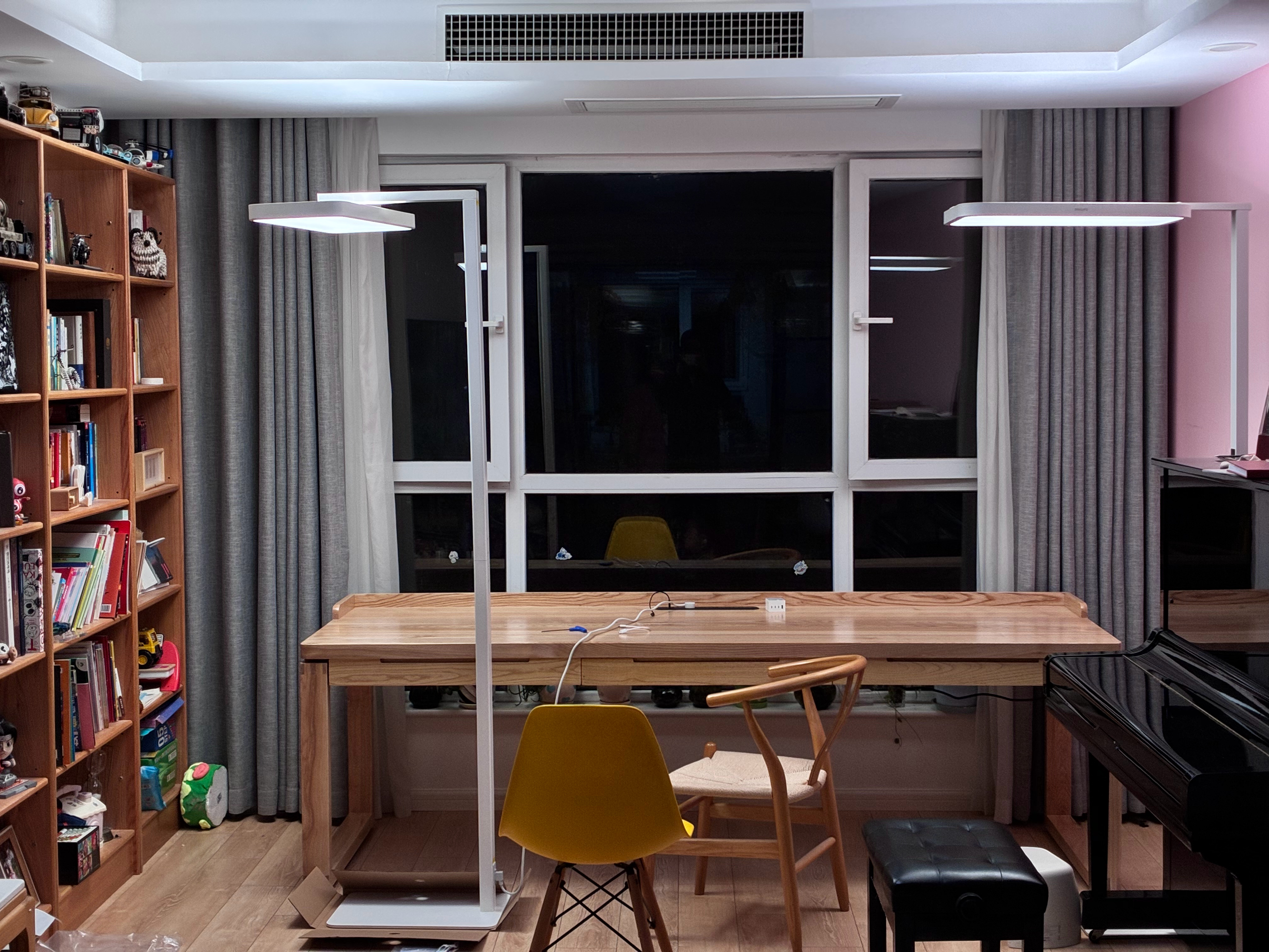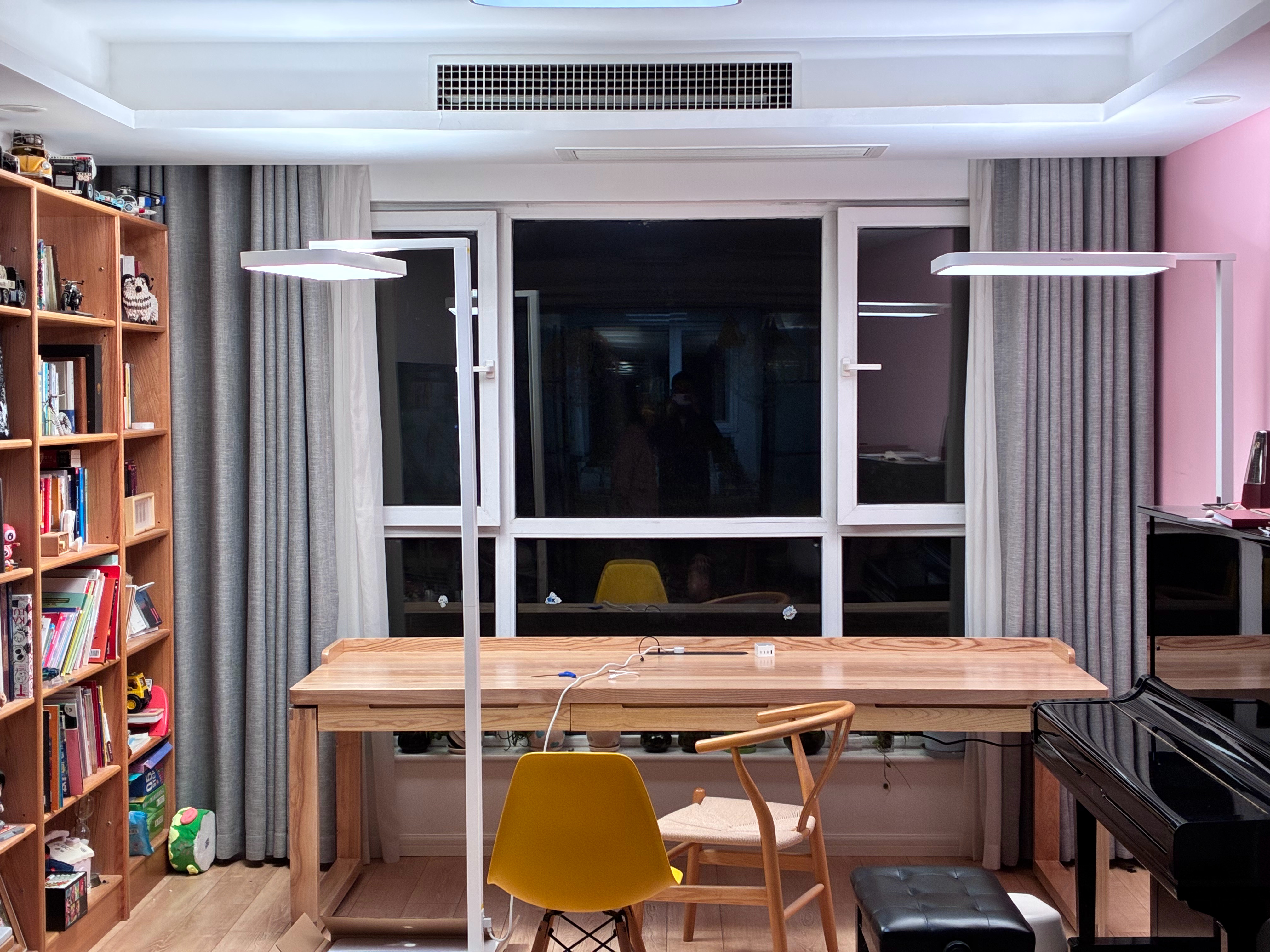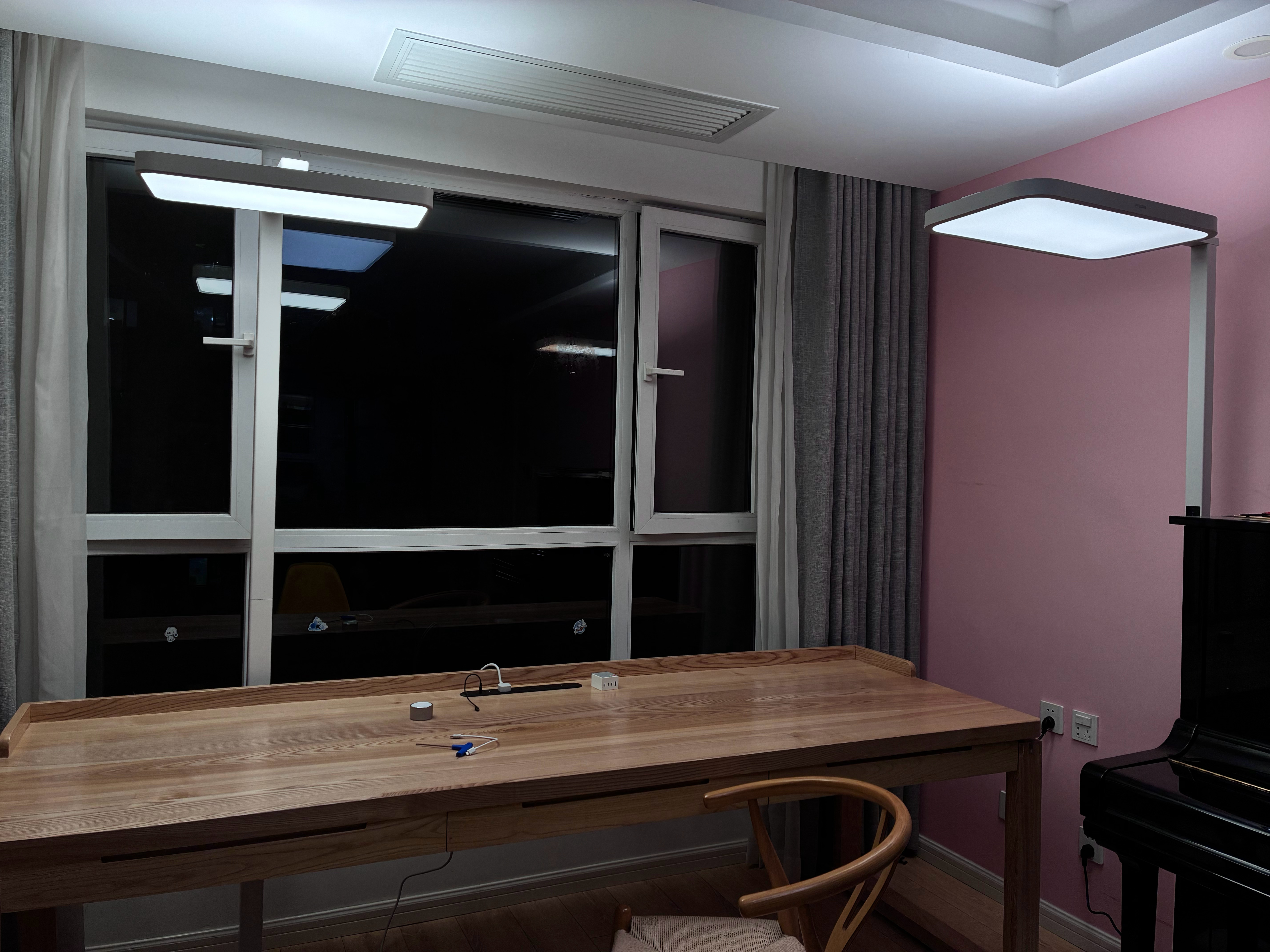 买了两组大路灯,都很亮的时候还不太好分别。但是把亮度拉低,就是相机曝光拉低以后,就能看出来说米家的这个大路灯的最高亮度是大于飞利浦的这个,光质也更好些。