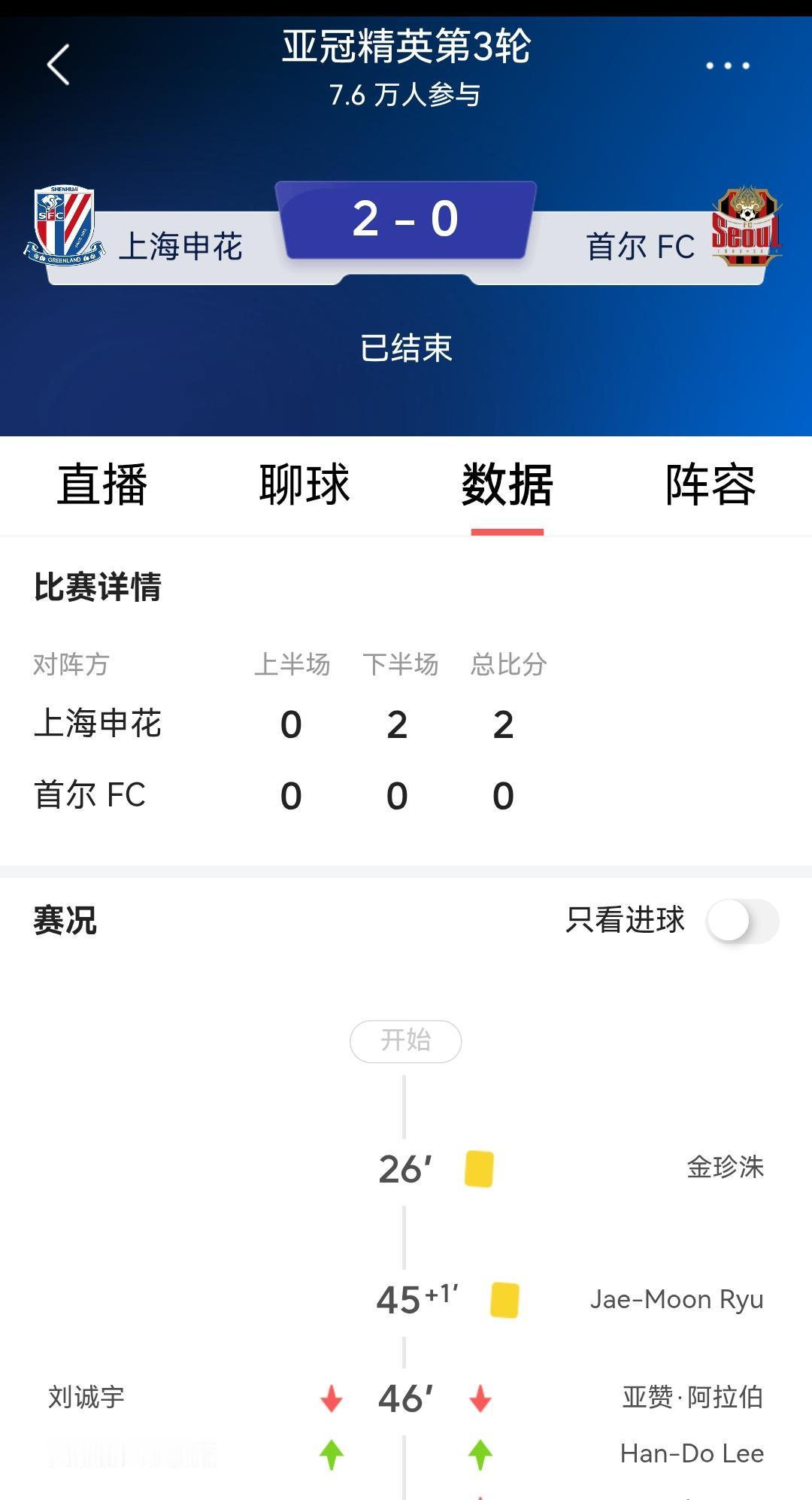 亚冠-上海申花2比0战胜首尔FC队,本场比赛申花队全主力出战,与对手上下半场始终踢的互有攻守,外援路易斯、阿苏埃进球。 上海申花队拿到了本场胜利,为中超球队挽回些颜面。今天这场球看着,李可其实还是挺好用的,作用很大。韩国的首尔队机会不少,但最后一传、最后一射把握欠佳。 这才是踢亚冠的意义,拼就一个字,这场球质量很高,确实这场打的非常好,场面数据赢球理所应当,好久没看到中国足球在跟韩国球队打比赛占上风,控制比赛并从容拿下的。今天申花队的守门员薛庆浩表现神勇,联赛里有这表现的话,申花队早就拉开身位领先了,就这场的表现,还是表扬一下