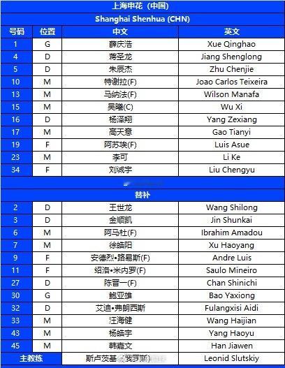 申花vs首尔首发:林加德先发!吴曦、蒋圣龙在列,米内罗替补上海申花vs首尔fc
