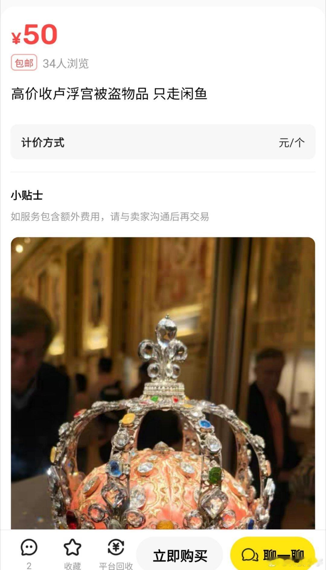 闲鱼回应平台出现卢浮宫珠宝好家伙,刚去看了一眼,有卖的,还有收的,世界果然是个草