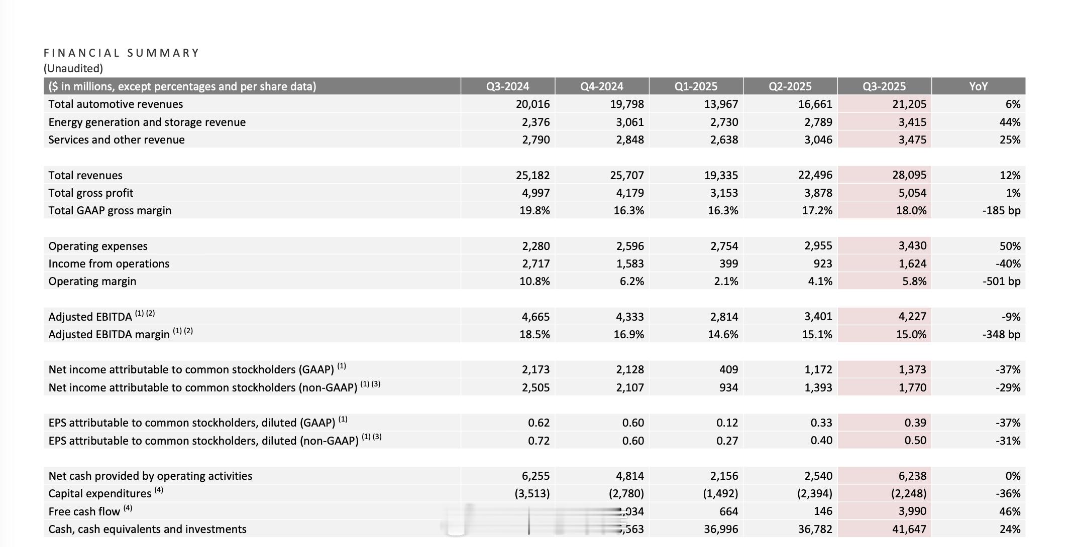 刚刚,特斯拉发布 2025 Q3 财报,给大家快速整理了一份关键信息: