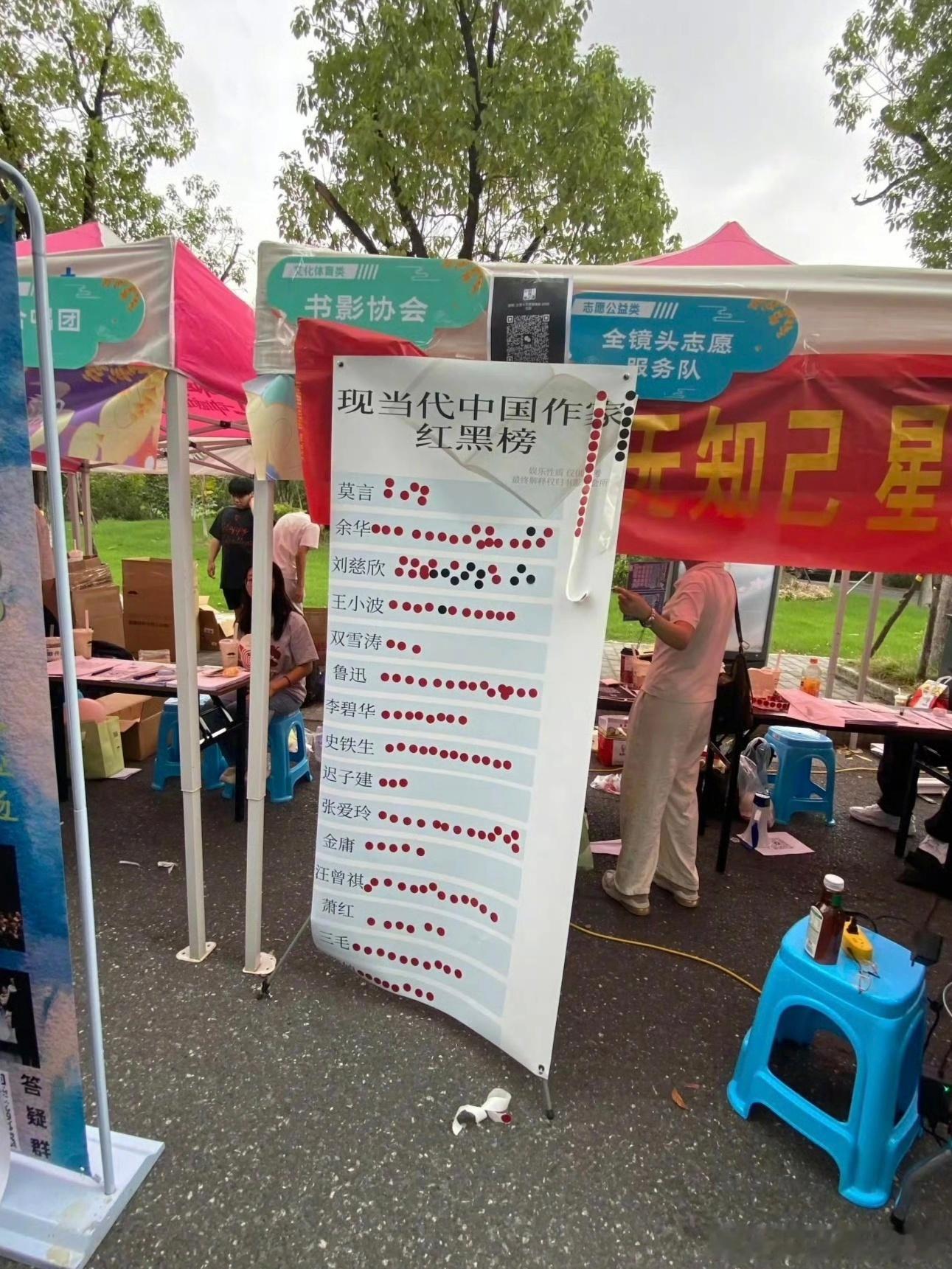 另外浙传学生还搞了一个“现当代中国作家红黑榜”,除了刘慈欣,其他作家基本全是红票,同样比较难评。归根结底这就只是校园内部小范围学生投票,也不知道是一人只能投一票,还是一人能贴好几张。大家权当看个乐子,不必较真。