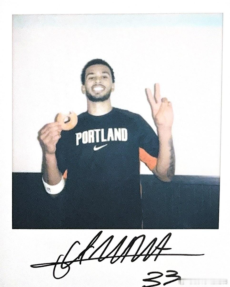 开拓者队全员拍立得配签名[并不简单][并不简单]杨瀚森常规赛首秀