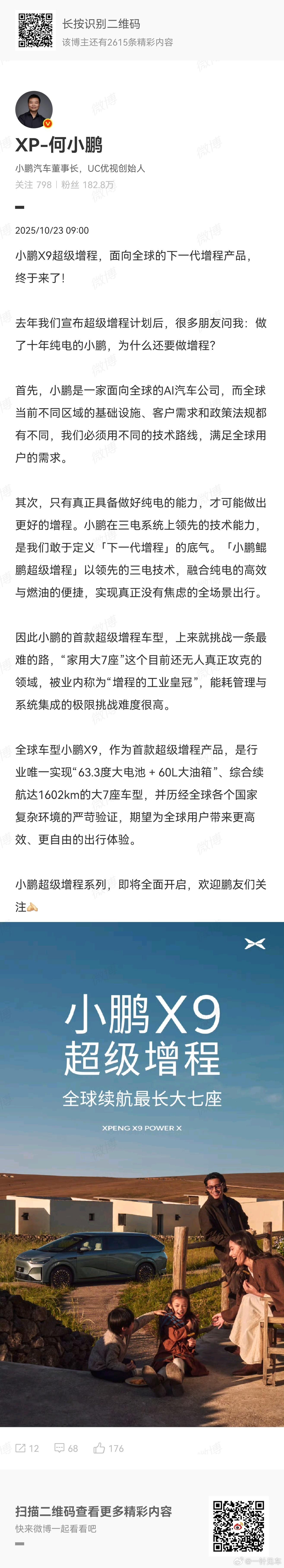 小鹏X9增程版配置官宣,63.3度大电池+60L大油箱”,综合续航1602km,它来了!1602公里续航的小鹏X9超级增程来了 ​​​