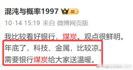 目前煤炭涨幅第一,银行涨幅第二。我观点很鲜明,这波老登行情还不错吧?