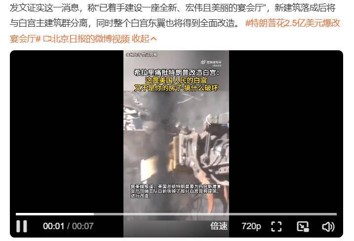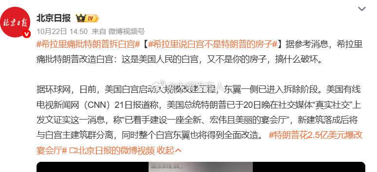 希拉里说白宫不是特朗普的房子,特朗普花2.5亿美元爆改宴会厅,热点观点