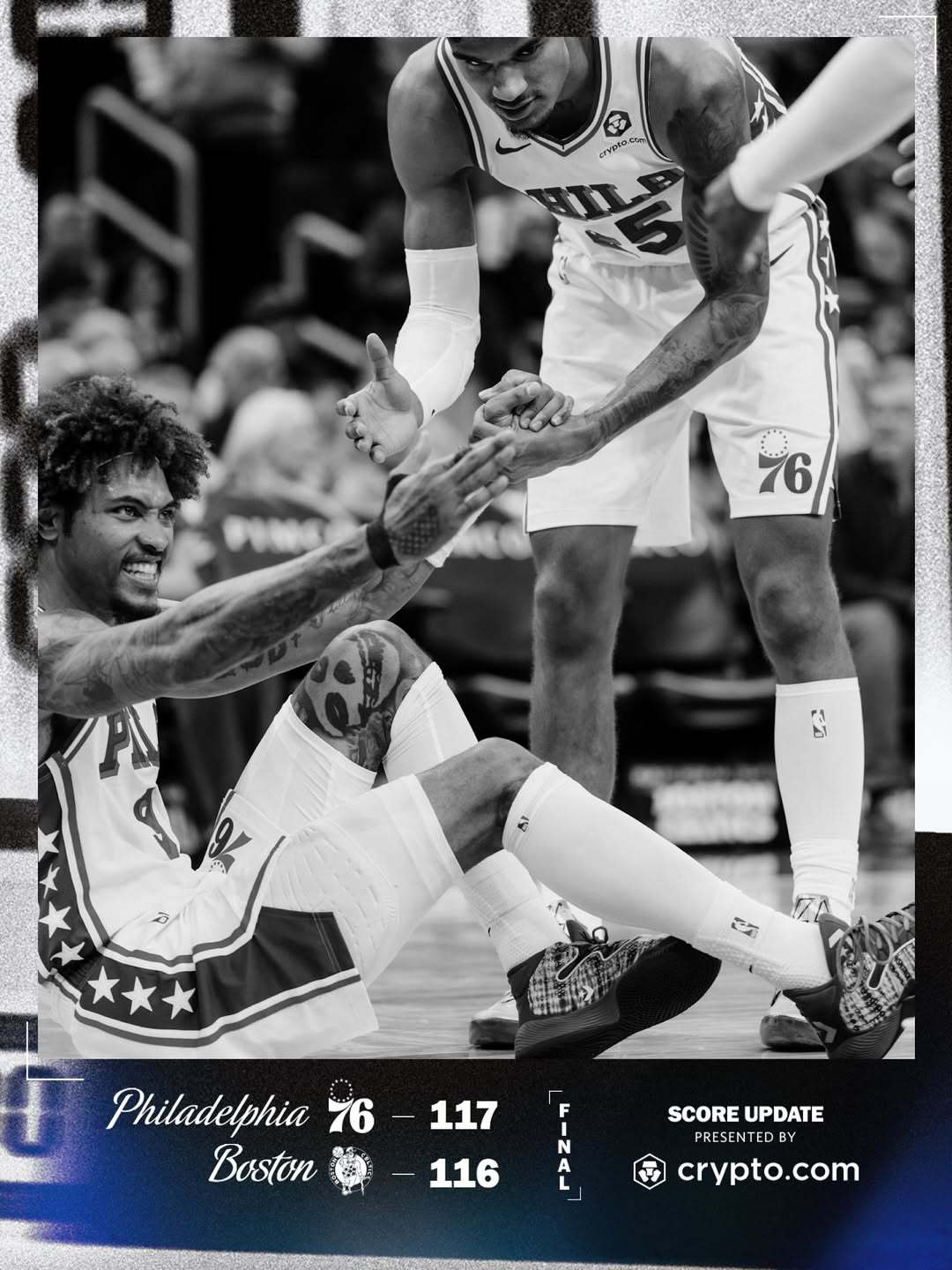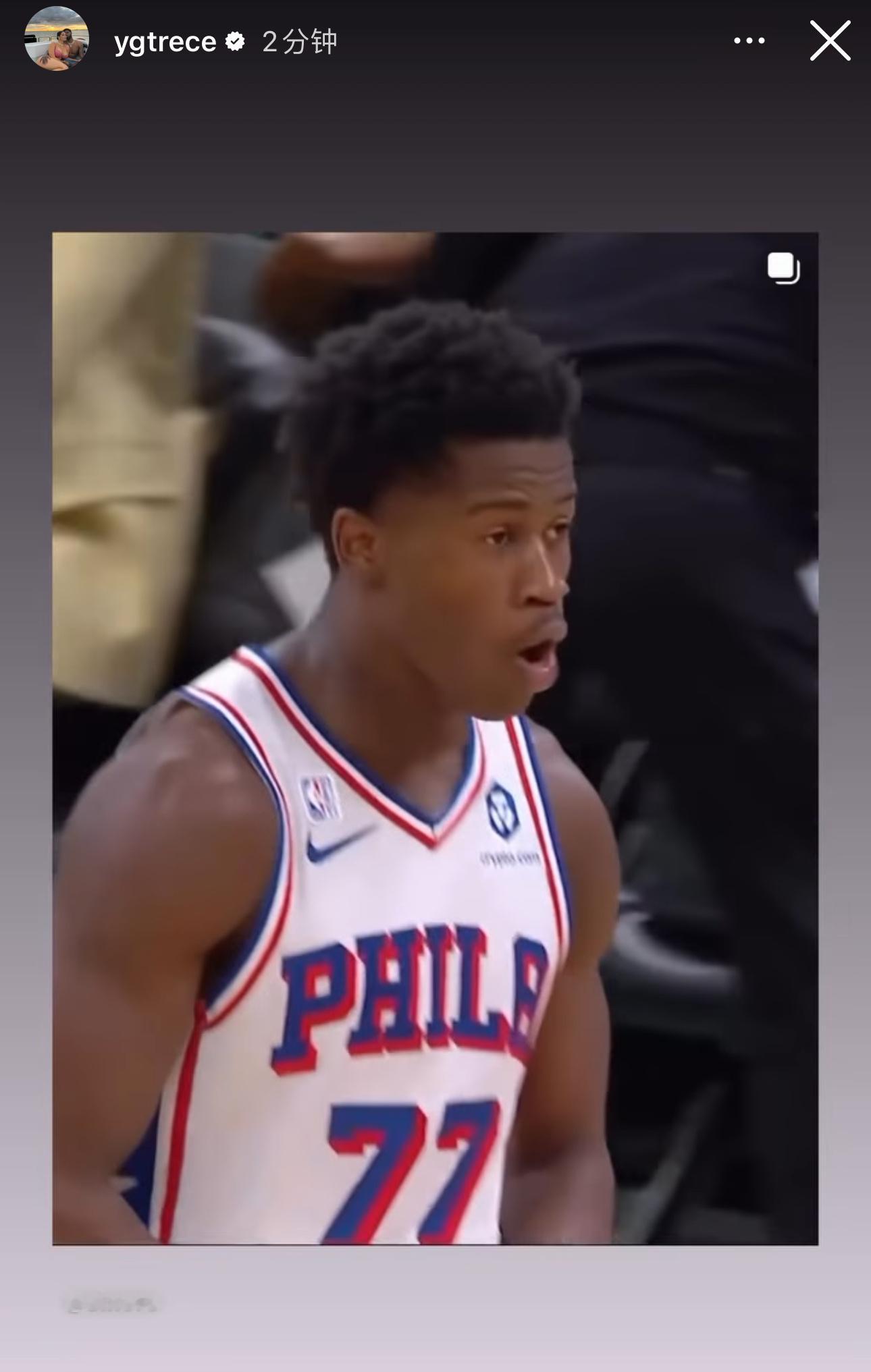 SixersWin!乔治赛后更新个人社交动态,转发分享了球队一则比分帖子,为球