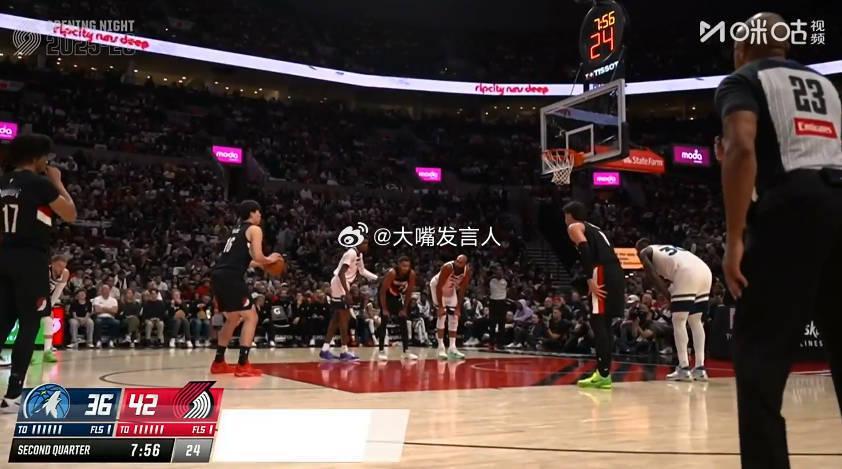 森林狼vs开拓者 上场了,全程没碰球,有参与防守、有帮队友,加油杨瀚森常规