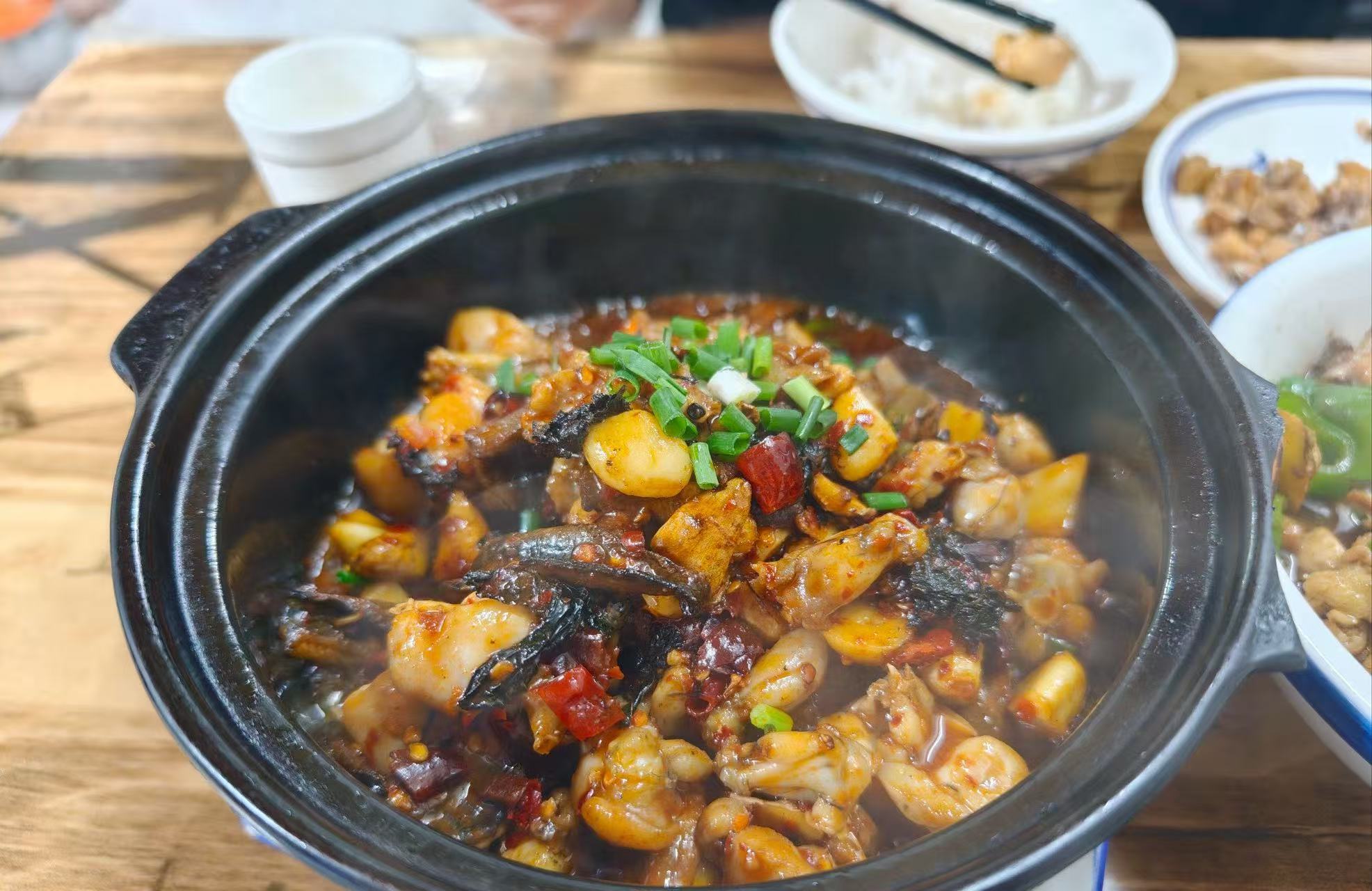 1️⃣.黄鳝焖牛蛙,黄鳝现杀现做无腥味,牛蛙嫩滑入味,酱汁浓稠挂碗。