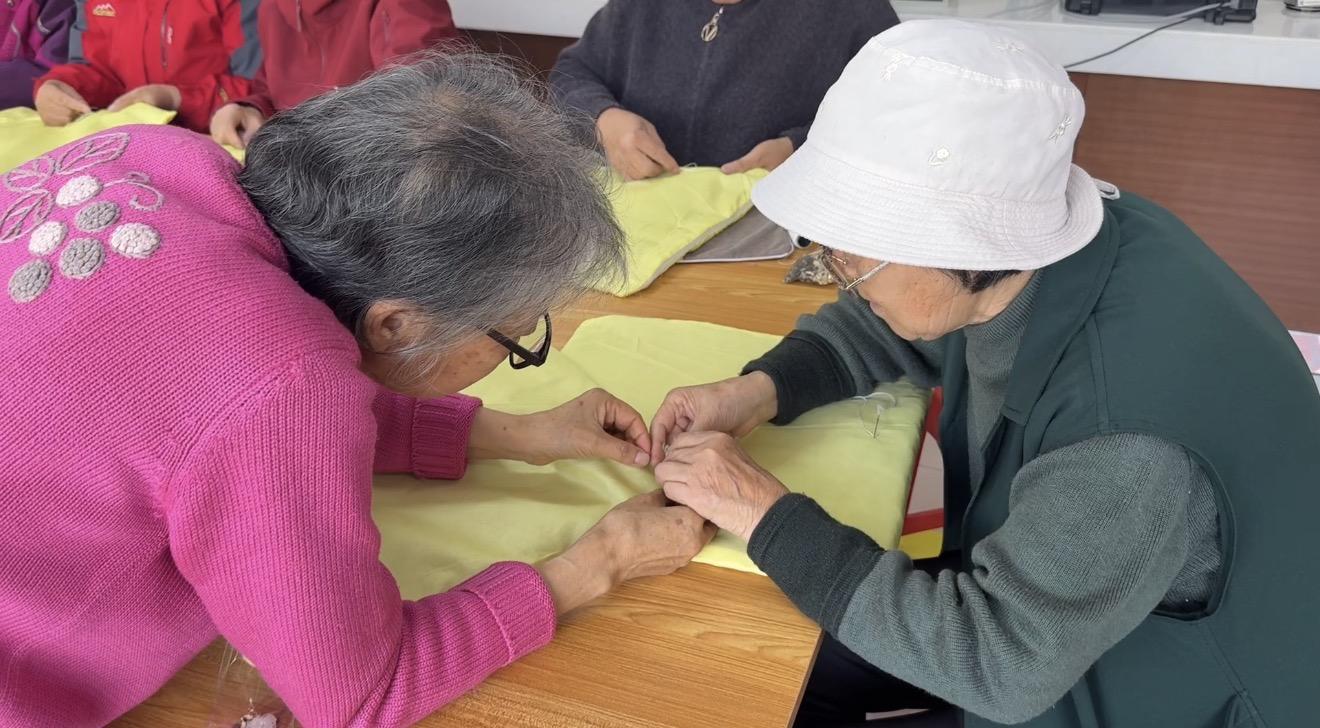 活动现场,志愿者提前准备好艾草、棉布、针线等材料,并详细讲解艾垫的制作步骤与技巧。老人们听得认真、做得专注,有的互相交流针法,有的分享生活趣事,手指翻飞间,原本零散的布料渐渐变成了一个个饱满厚实的艾垫。淡淡的艾草香萦绕现场,欢声笑语不断,热闹又温馨的氛围感染着每一个人。