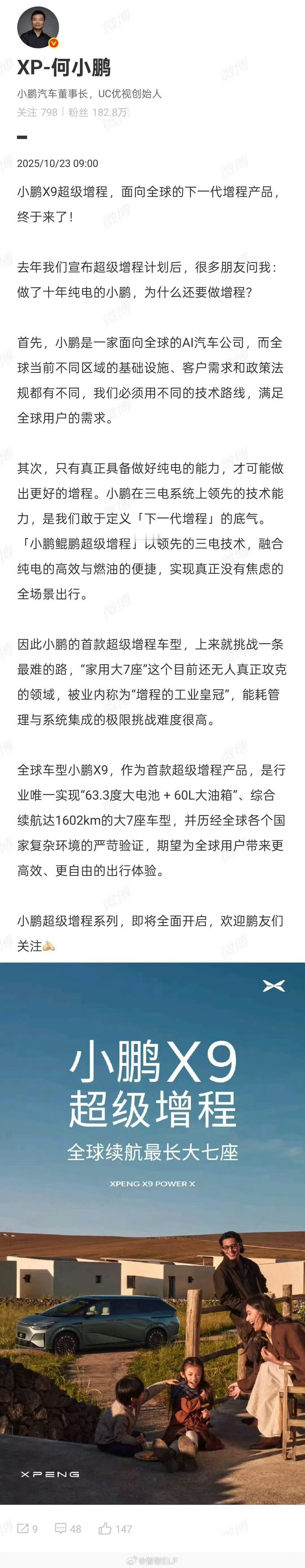 小鹏X9增程版这电池是不是太夸张了现在是主打一个“买增程送电车”对吗[泪奔]​