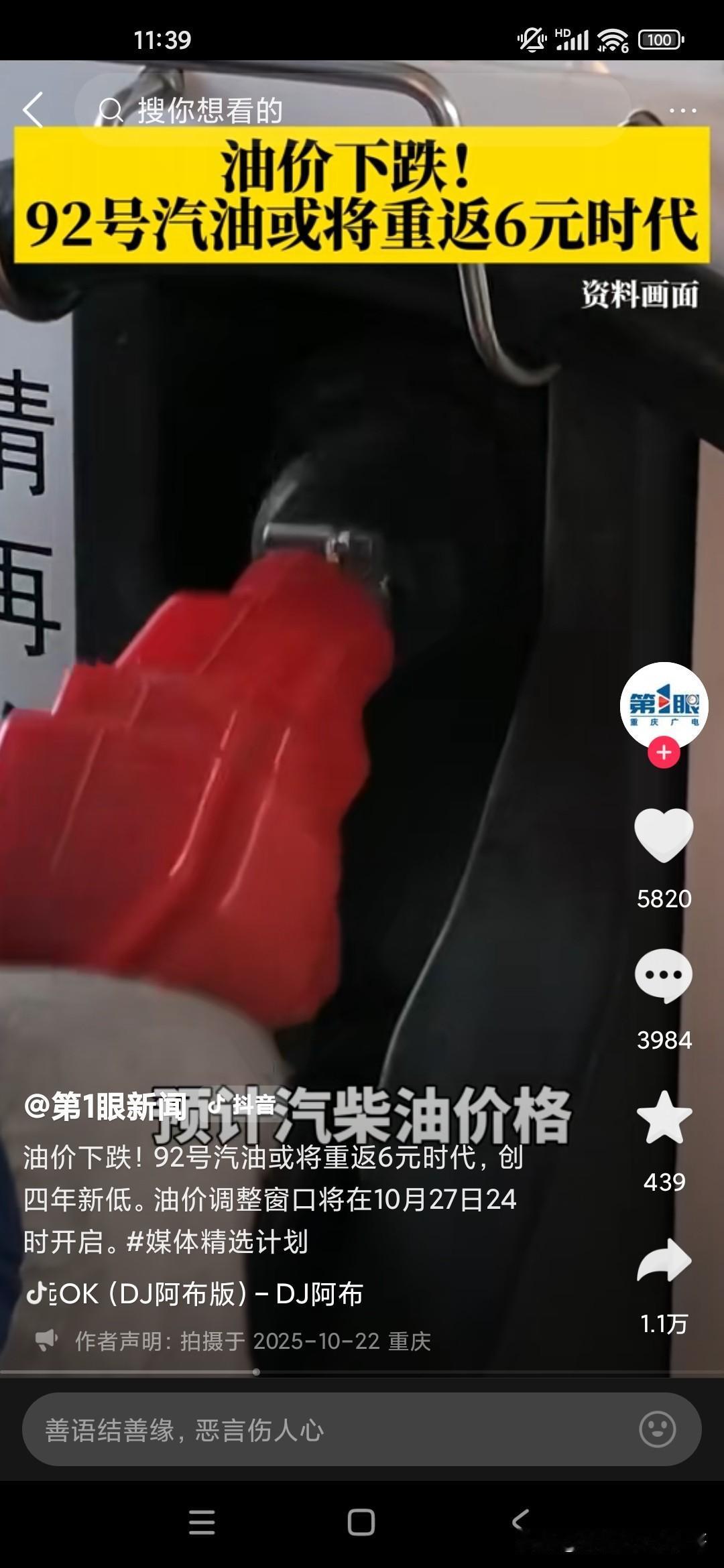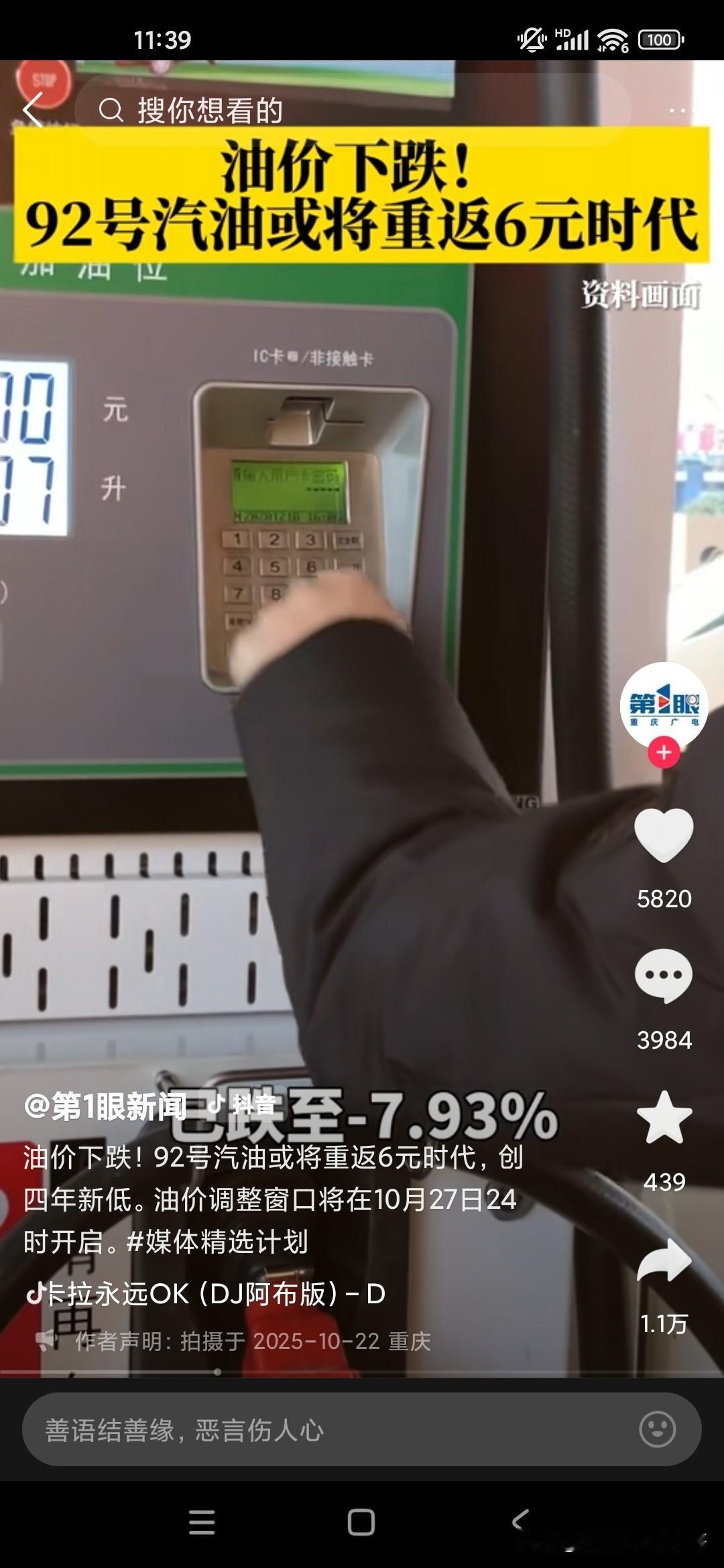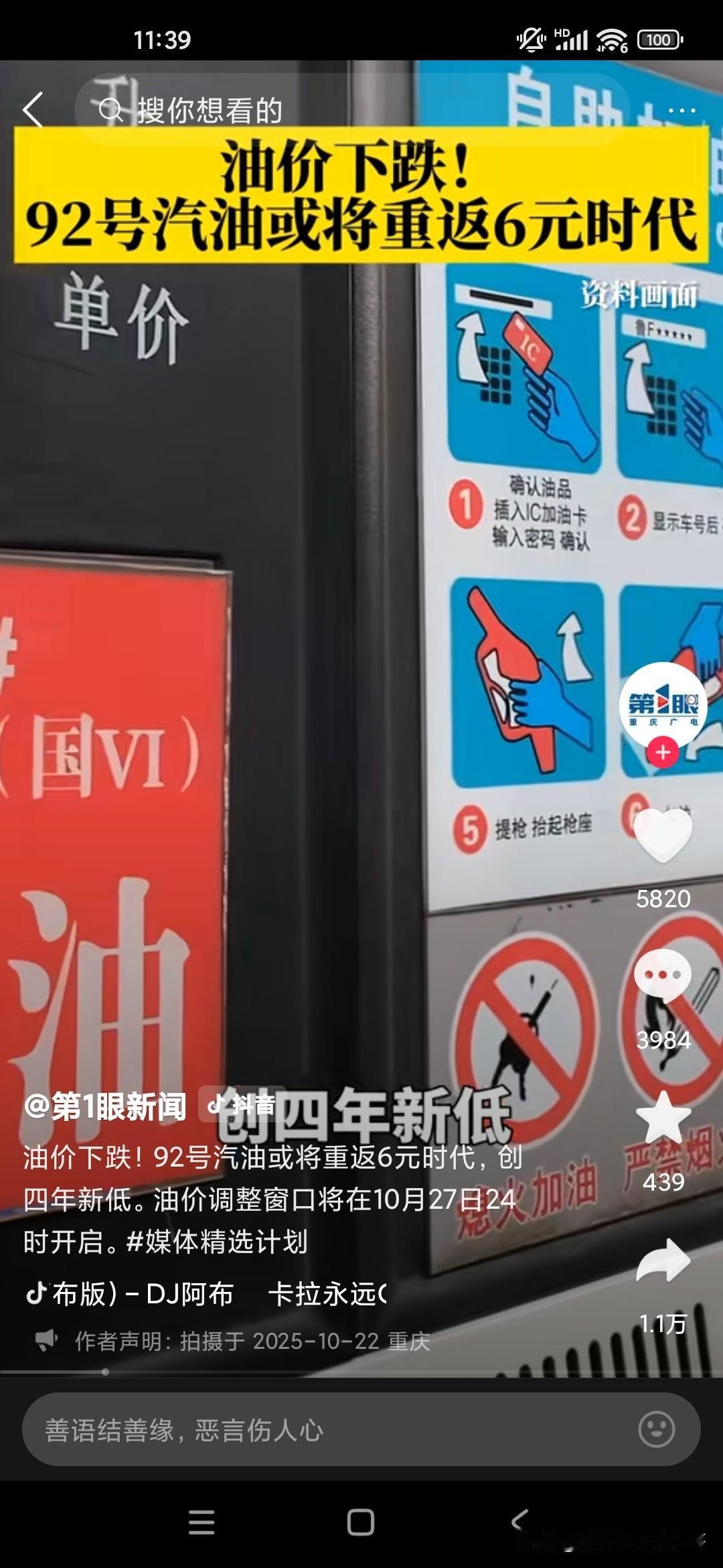 油价终于要下跌了,我的车经常加的是92号汽油,以前加一箱油可能就需要350块啊,