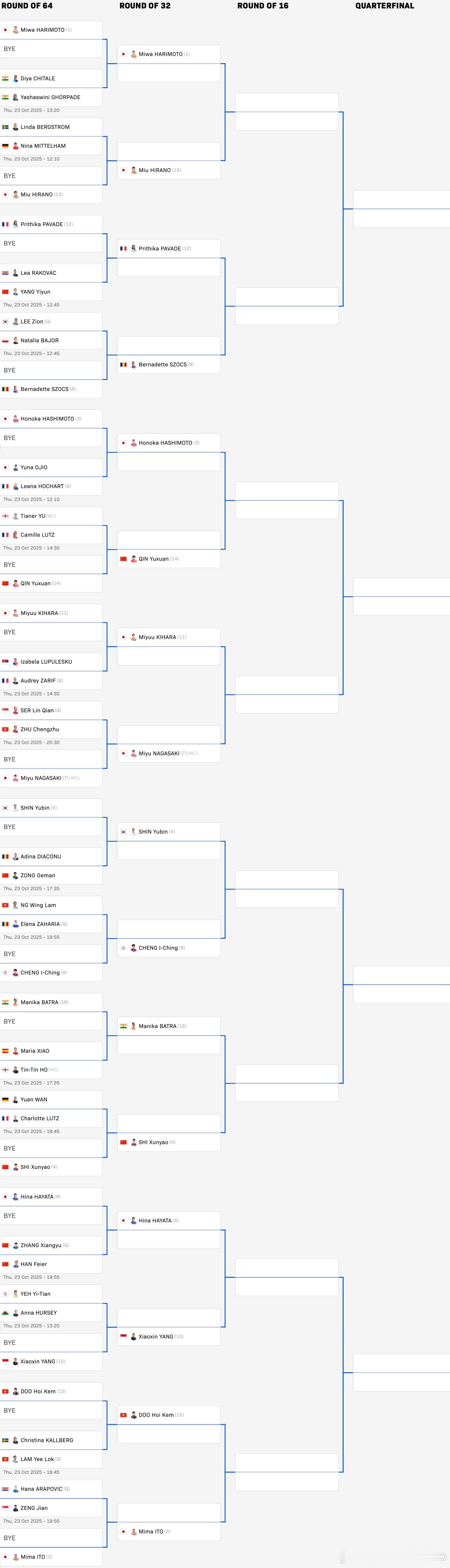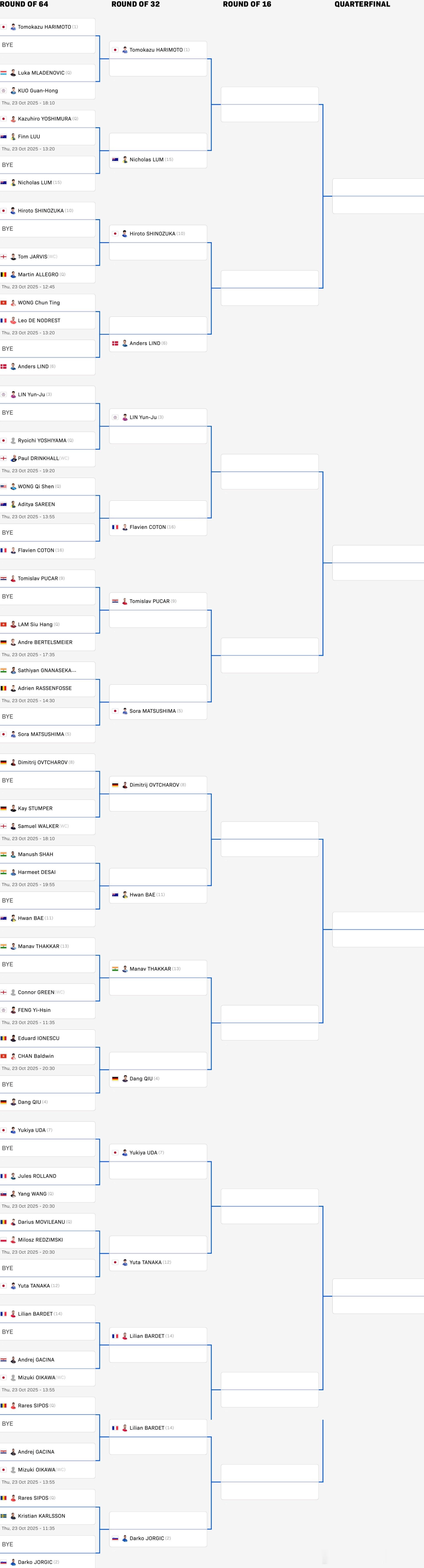 WTT球星挑战赛伦敦站2025 单打正赛签表