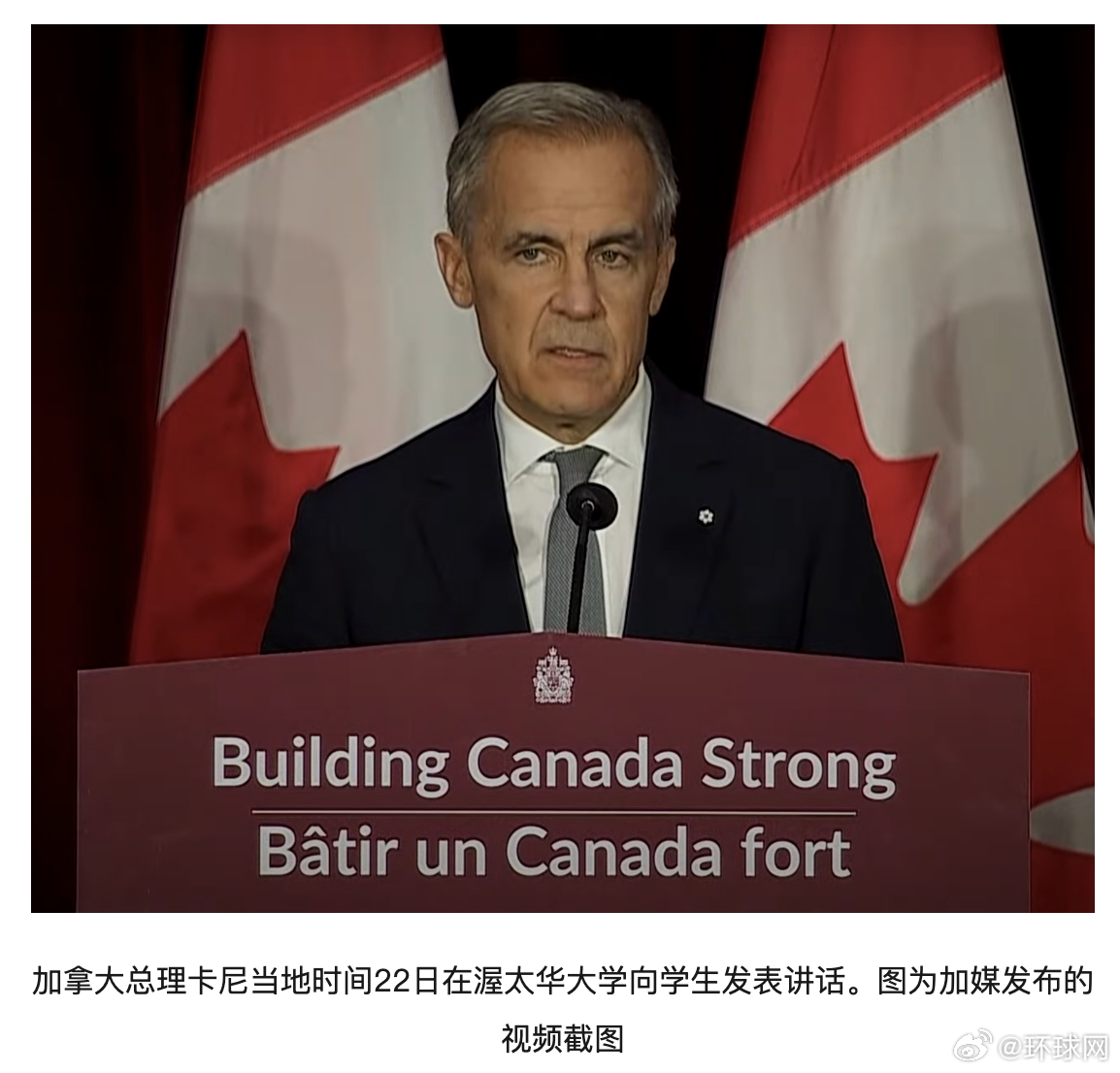 另据彭博社报道,为证明其贸易目标正稳步推进,卡尼还重点推介了加方上月与印度尼西亚签署的自由贸易协定,以及与阿拉伯联合酋长国在人工智能领域、与欧盟在防务领域、与德国在关键矿产领域达成的合作和“基础性协议”。