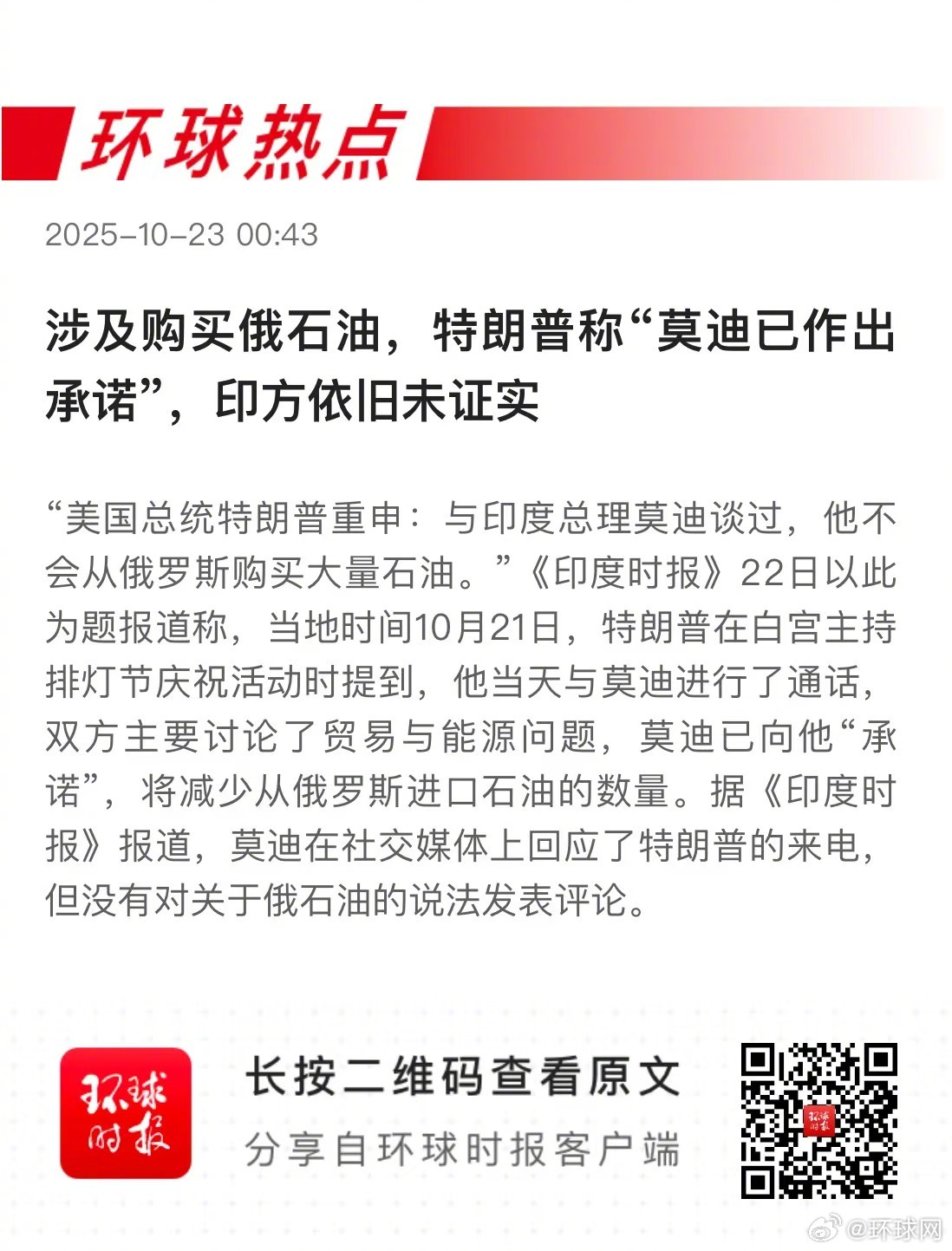 ▲#特朗普又称莫迪承诺减少从俄进口石油#