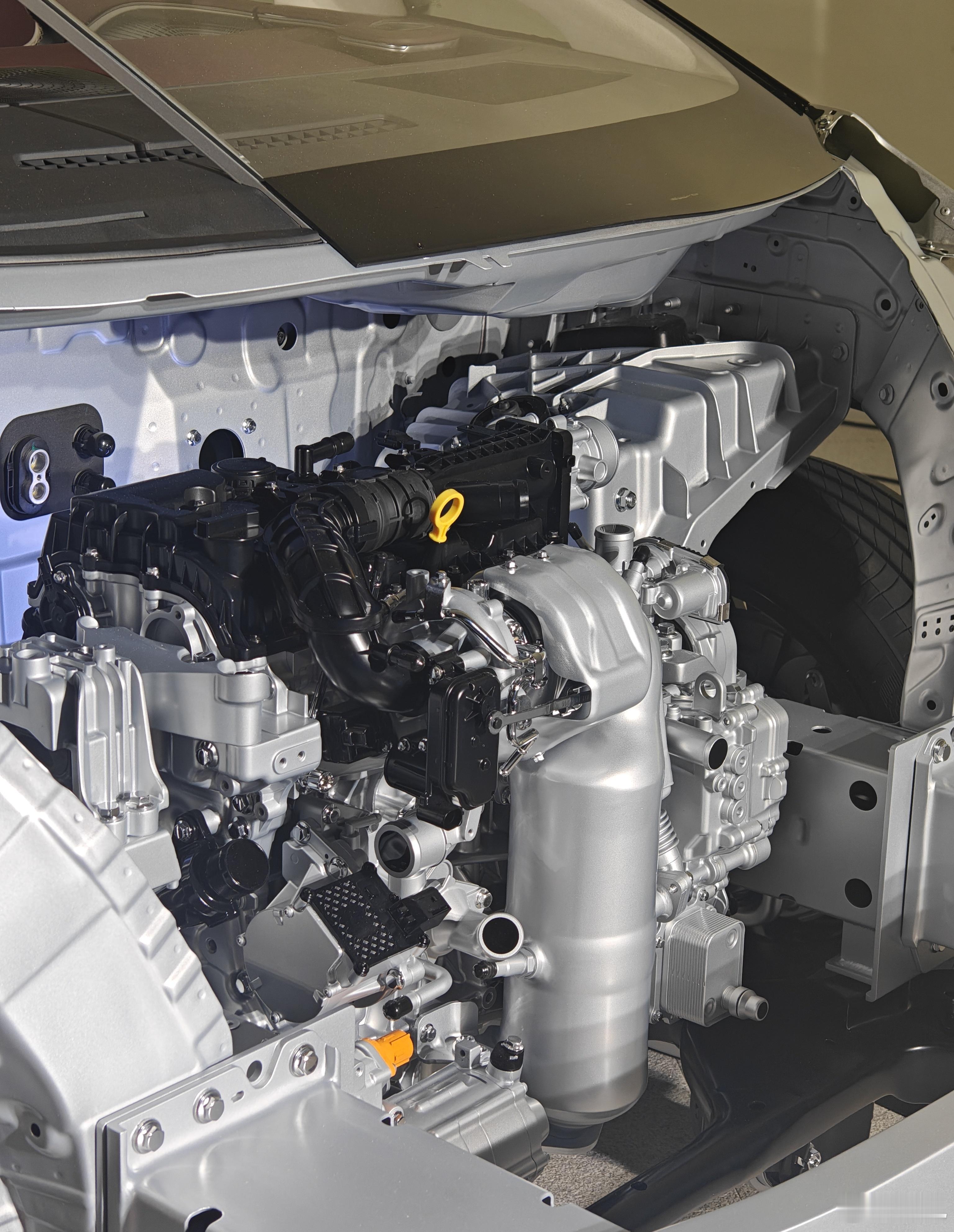 纯电版主驱电机其实在前轴,哪怕四驱车型的后驱电机也不是大电机,所以留给后轮转向机构的位置就非常充裕。