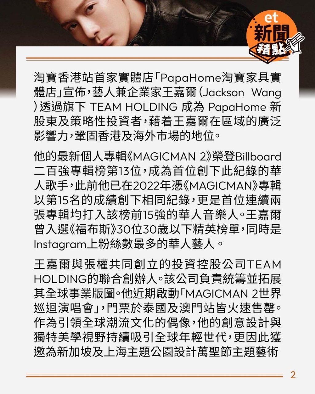 王嘉尔入股淘宝没想到王嘉尔的跨界破圈这么猛!入股淘宝是什么水平不言而喻了吧~阿