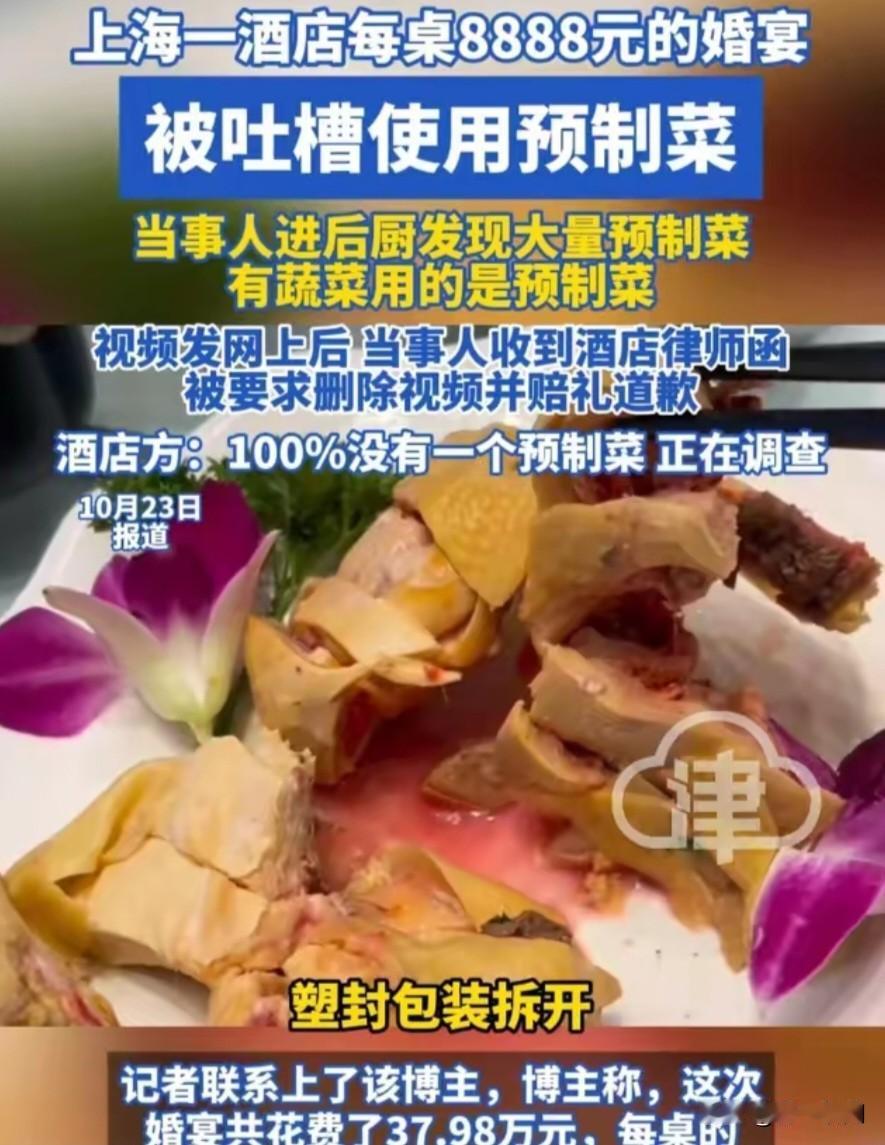 又一个说100%没有一个预制菜,上一个说这话的怎么样了呢?每桌8888的婚宴被吐