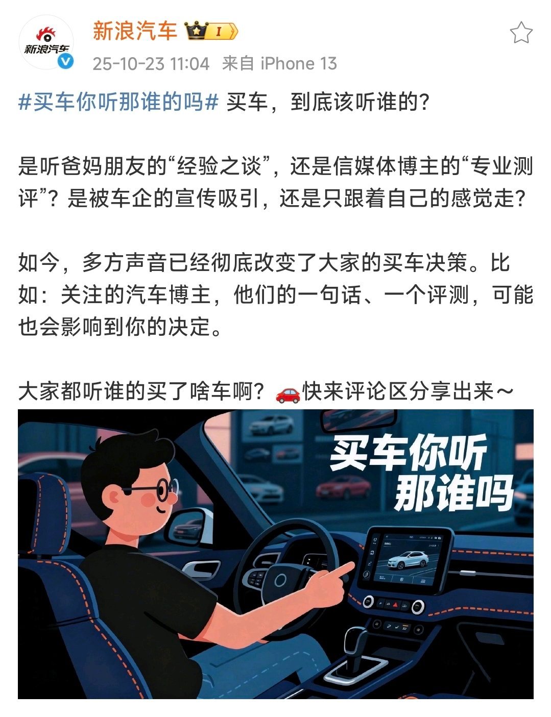 买车你听那谁的吗买车听自己的,是汽车全行业下个阶段的大趋势,买车听别人话的一派,会进一步衰落。