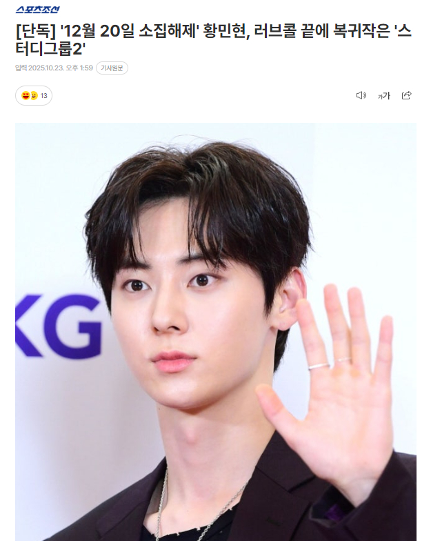 独家:黄旼炫12月20日退伍,回归作是《Study Group 2》