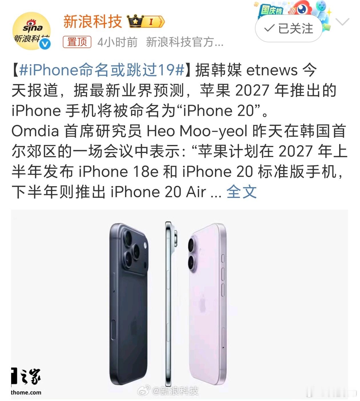 苹果可能跳过iPhone19直接iPhone20。你跳过了,那让刚跳过的隔壁某家怎么办?继续跟着跳吗?这就有点尴尬加。[doge][笑而不语]