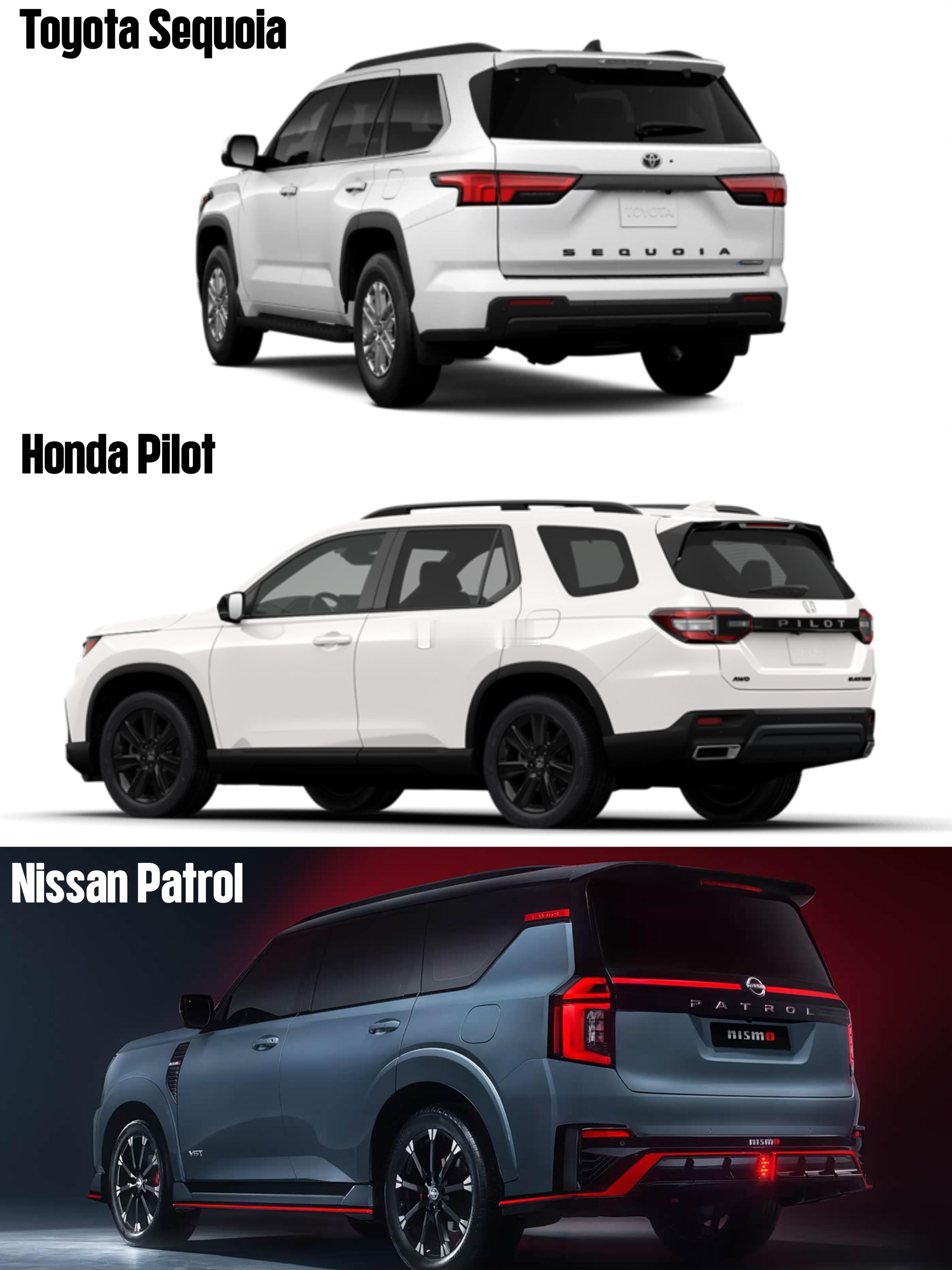 日系三杰最大的SUV,你喜欢哪个,一向以空间、经济省油著称的日系车,本田飞行员pilot车长超过了五米,丰田红杉sequoia车长超过五米二,日产途乐patrol车长甚至超过五米三,这些还是你熟悉的日系省油小车吗[笑cry]日系车