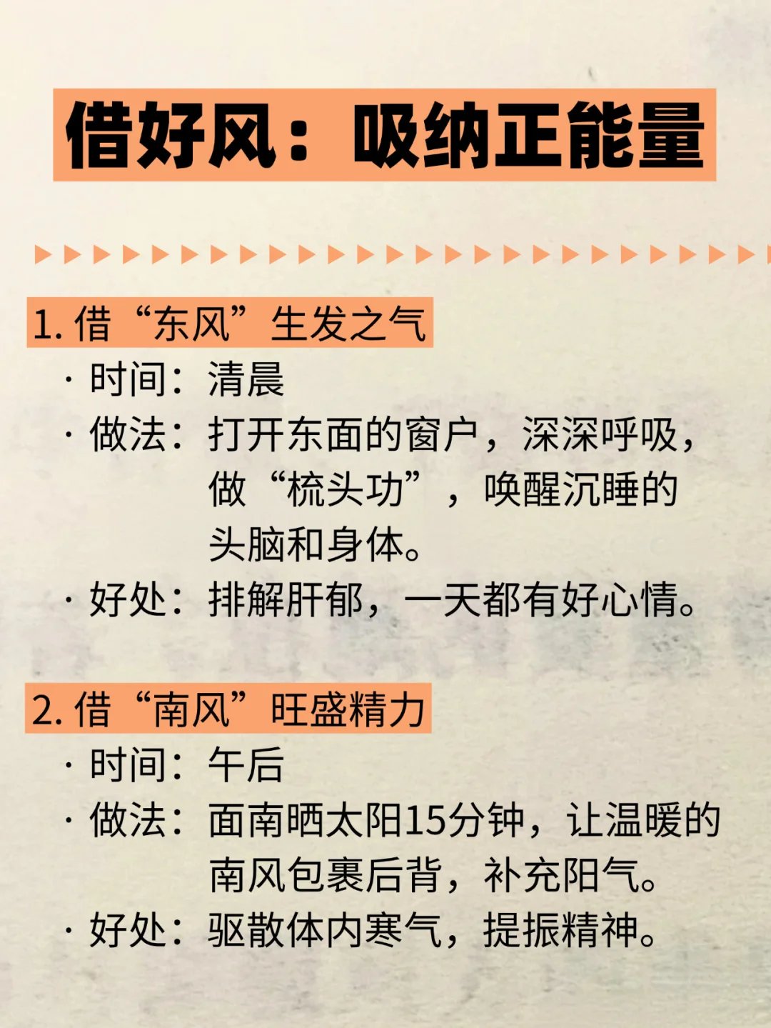 · 做法:面南晒太阳15分钟,让温暖的南风包裹后背,补充阳气。