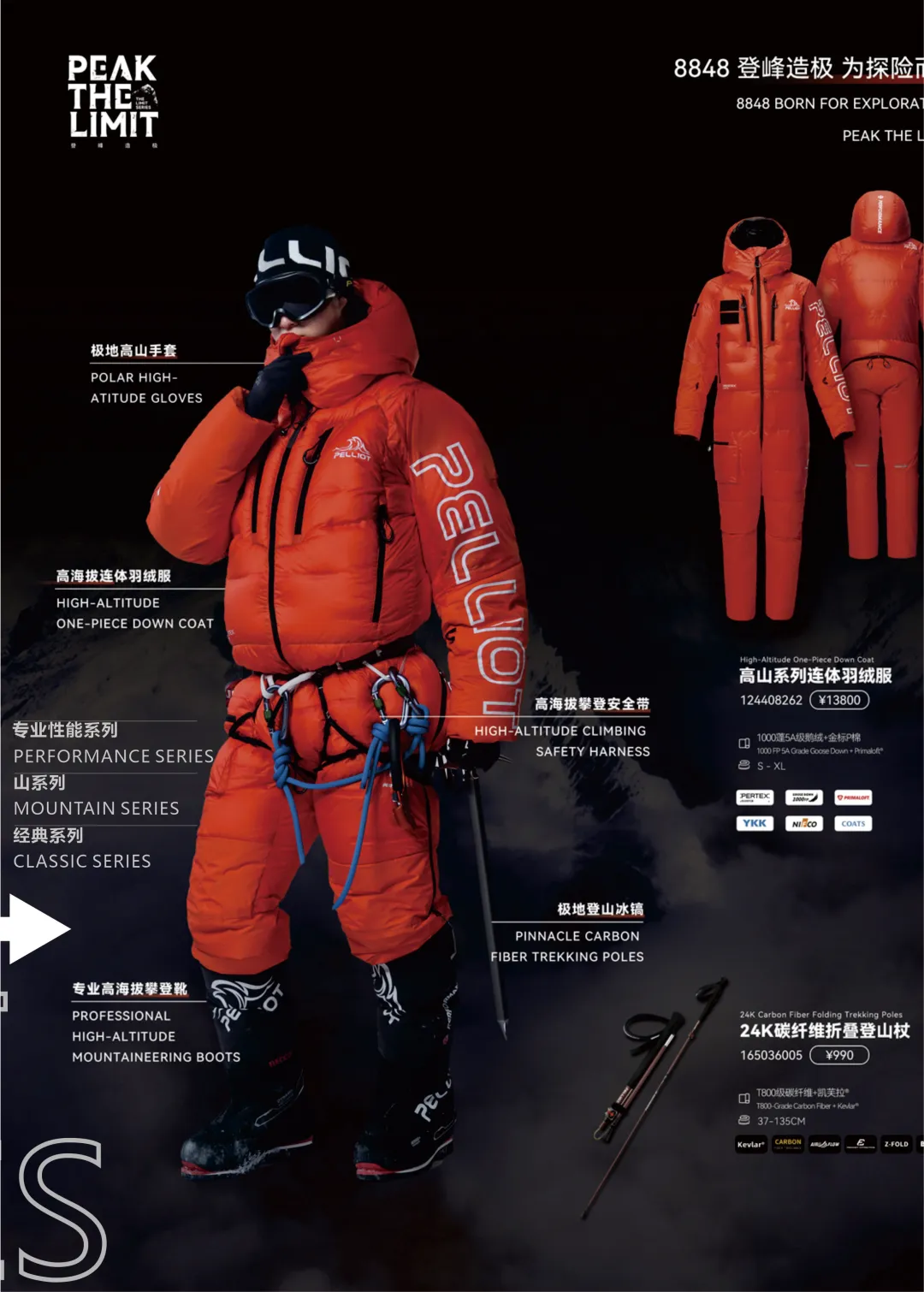 🧗PEAK THE LIMIT这条线已经能看到高山连体羽绒、碳纤维登山杖、登山靴、冰镐、MUMMY睡袋、高海拔帐篷这些硬核装备了,这些可能大部分人暂时用不到,但它至少在告诉我们——伯希和能做到的,比你以为的多