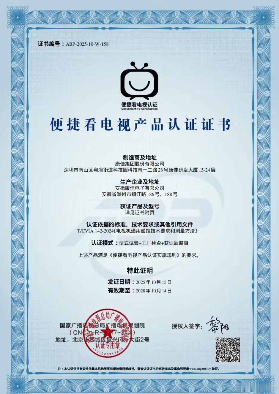 有这个认证的产品可以实现“开机进直播”“一键进直播”和支持通用遥控器三大关键功能,用户打开电视即可直接进入直播频道,无需在复杂界面中层层跳转;若需返回直播界面,只需按下遥控器看电视键,即可快速完成操作。