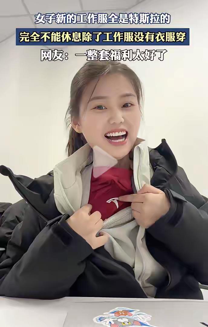 特斯拉又在拉仇恨,确实让人恨之入骨 特斯拉一位女员工抱怨说,全身上下都是工作服,买衣服的机会都没有,天天穿特斯拉的衣服都有点不好意思了。 有人调侃女员工让她把衣服扒开看看里面是不是?女员工豪爽的在镜头下一层层的把带有Logo位置的地方扒出来给大家看,四层衣服果然都是特斯拉。 很多人看了又不开心了,有人说一直想去特斯拉可是没有机会,太恨特斯拉了。 特斯拉对待员工的福利待遇有目共睹,在国内算得上比较好的企业了,相比其他大企业发件东西还要扣钱真是好太多。特斯拉优惠 特斯拉销售数据 特斯拉收入锐减 特斯拉薪酬体系 特斯拉中国员工 特斯拉薪酬大战 特斯拉女车主