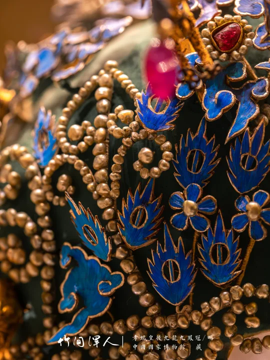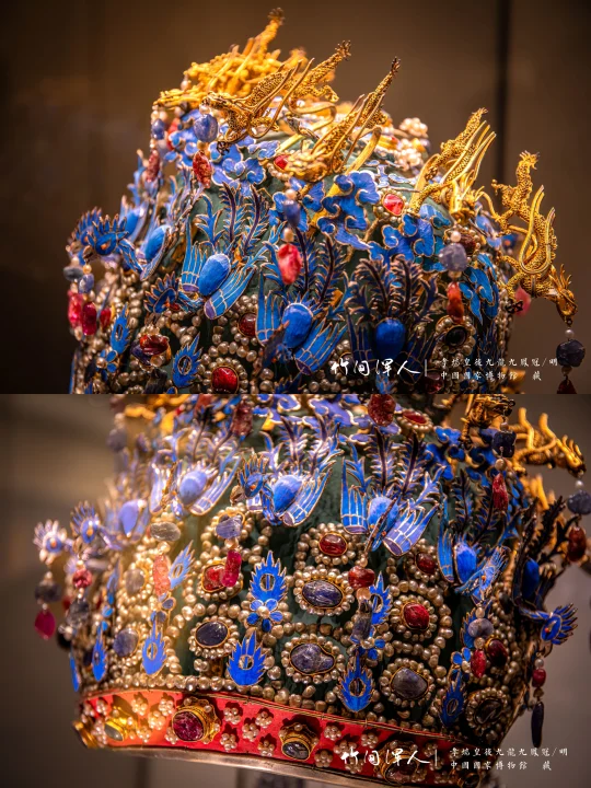 定陵出土的这件孝端皇后的九龙九凤冠,绝对是极品中的极品,400年前的冠到现在还是光彩照人,繁复到你第一眼都不知道该看哪里,无论看多少次、任何角度、放大再放大,都觉得无比震撼。