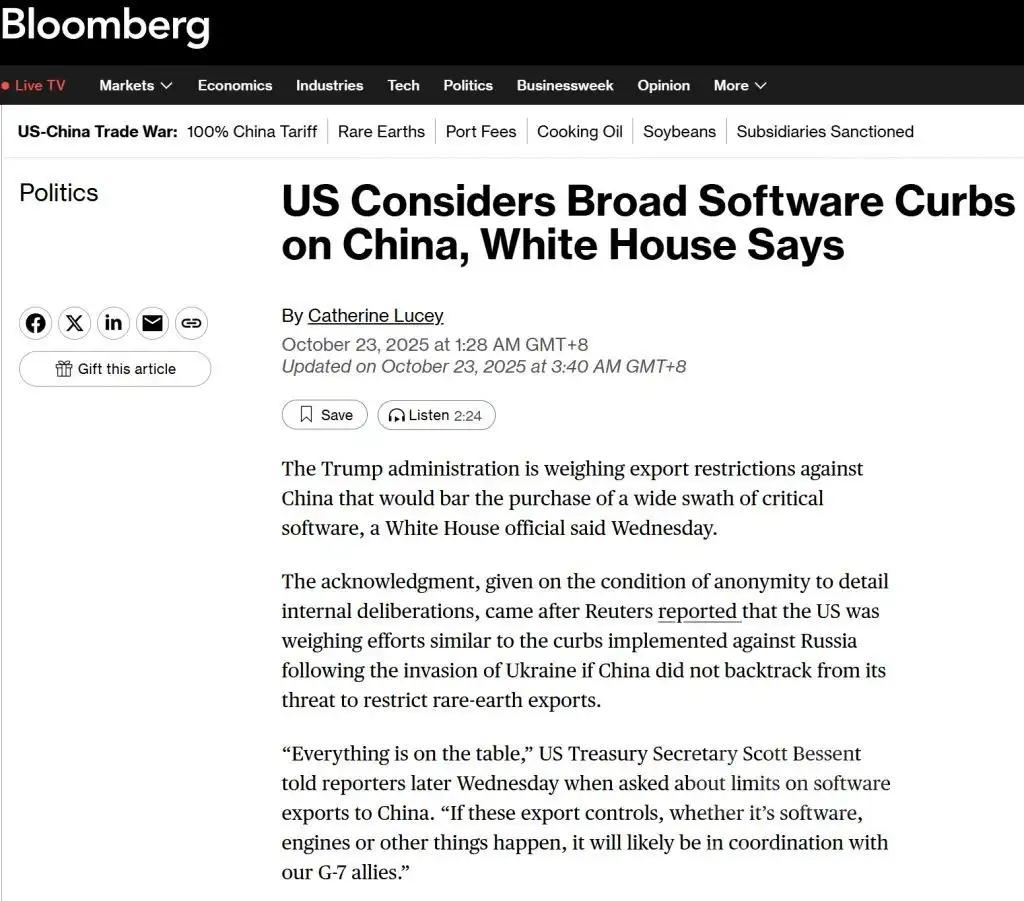 特朗普又出招了! 中国如果不收回稀土限制的威胁,就采取对俄乌冲突后对俄罗斯的限制手段——对软件实行限制! 特朗普也是昏头了。搬起石头砸自己的脚。 真限制了,到时候盗版走起呗,我看谁敢抛下地球最大市场不要,现在大伙抵制盗版是为了能维护正版的收益,你正版本来也不卖谁还抵制盗版? 你猜中国为这些软件花多少钱一年。不是版权产权保护越来越严的话,中国盗版随便满世界飞的,真撕破脸你真别怪我们无视版权把你产业链打烂掉。