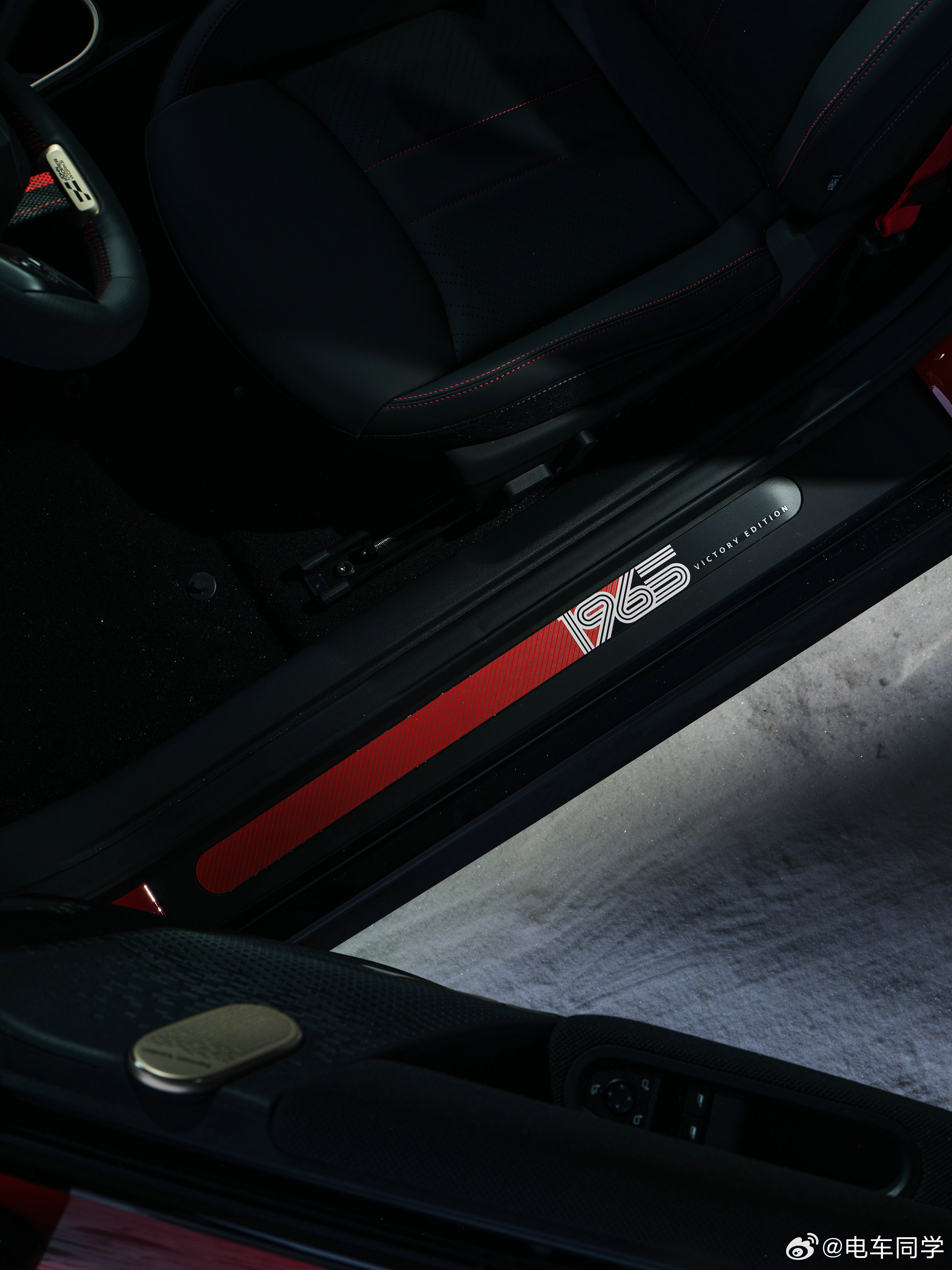 你仔细看 B 柱上的 1965 纪念铭牌,上面还刻着参赛车辆及赛车手、领航员身份信息。”