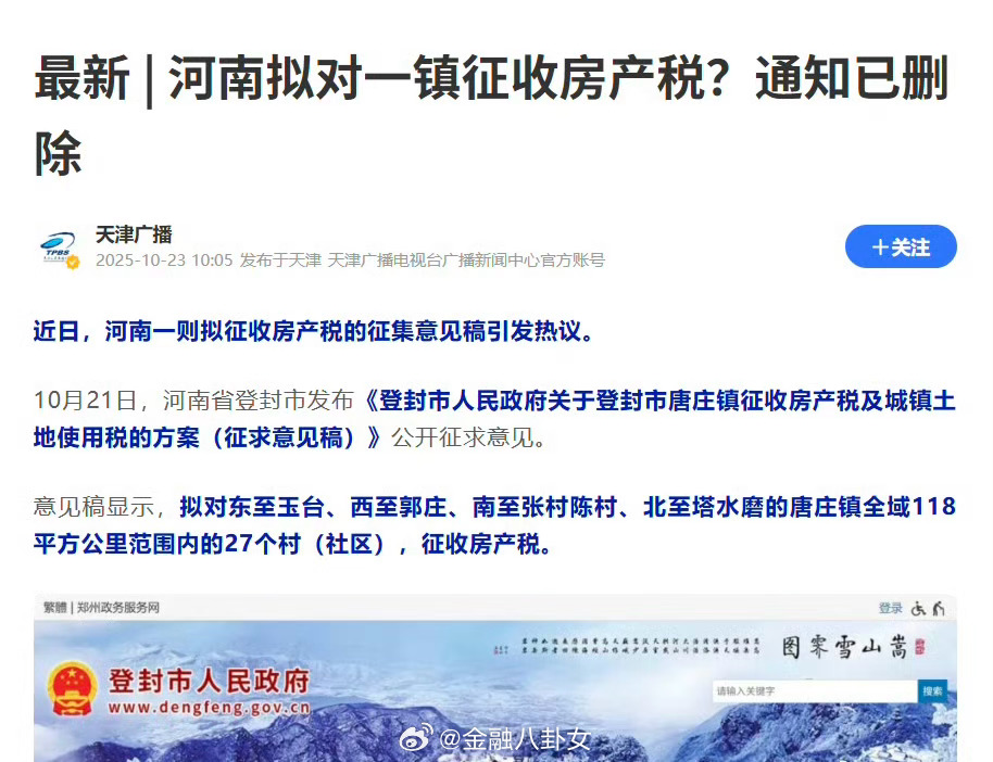 河南拟对一镇征收房产税,引发争议后删除征求意见稿[并不简单]