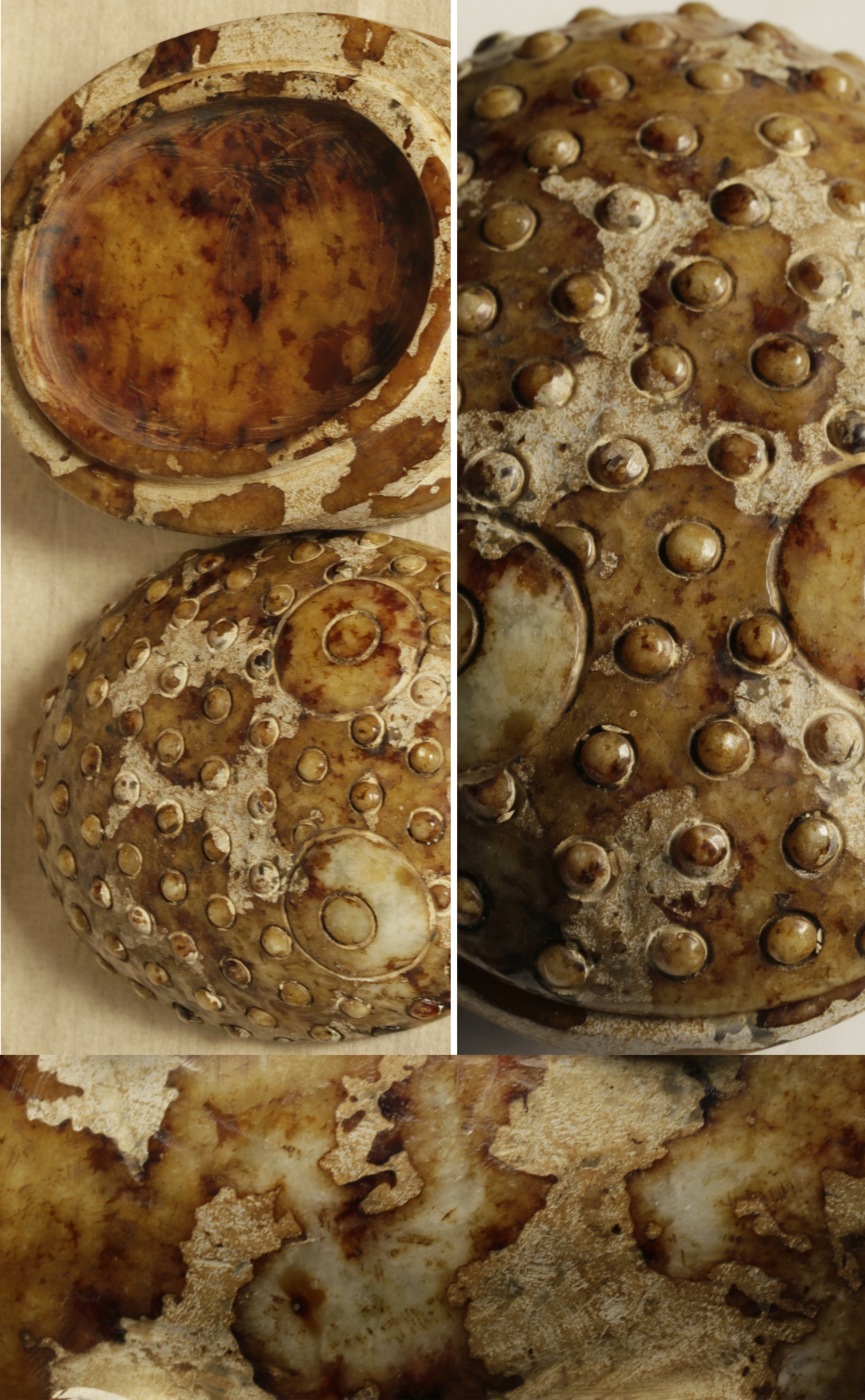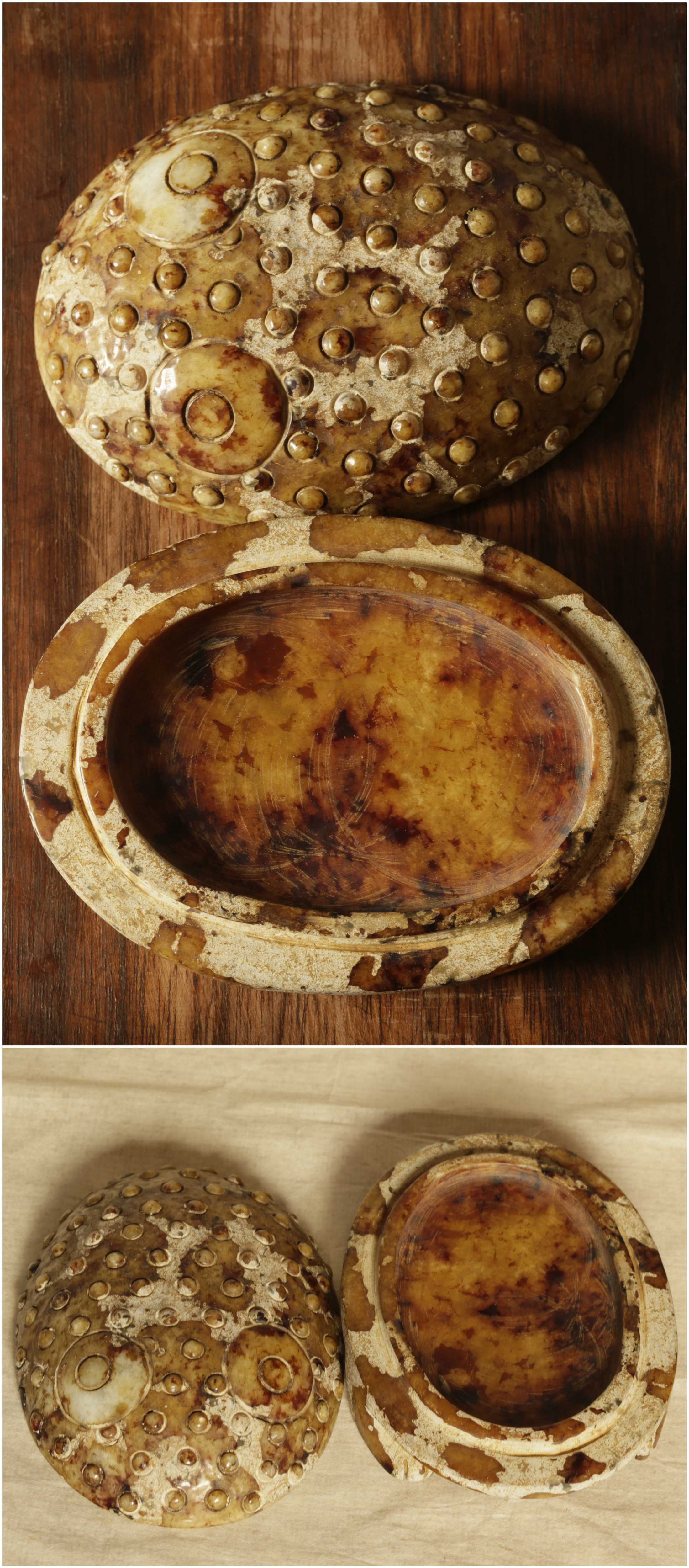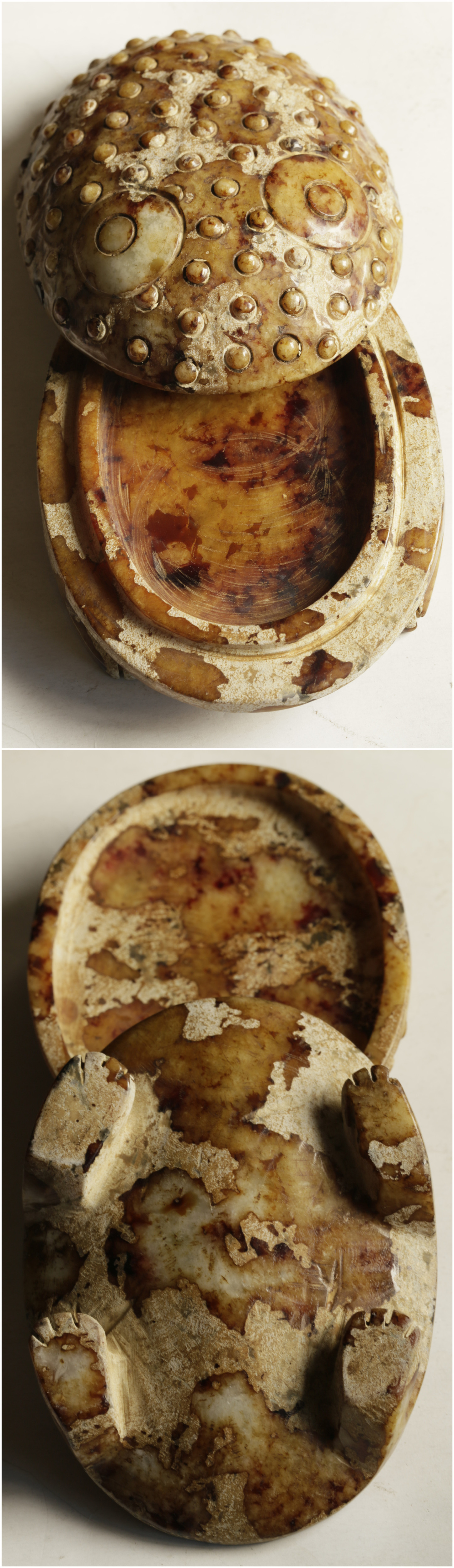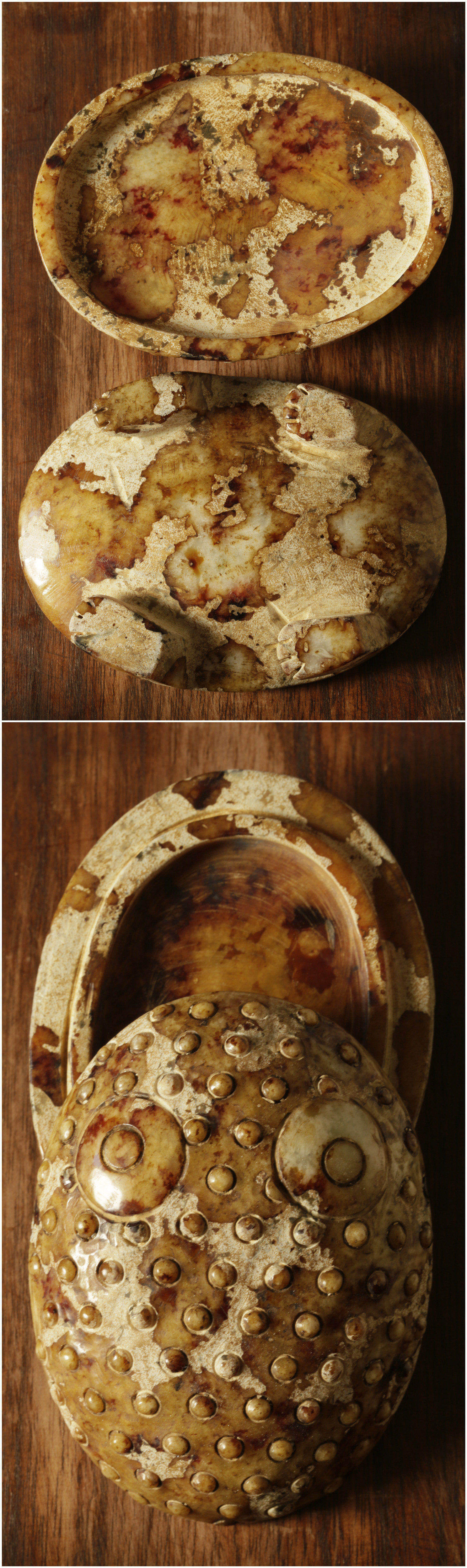 战汉 . 白玉重沁蟾蜍形小盖盒(一组两件)