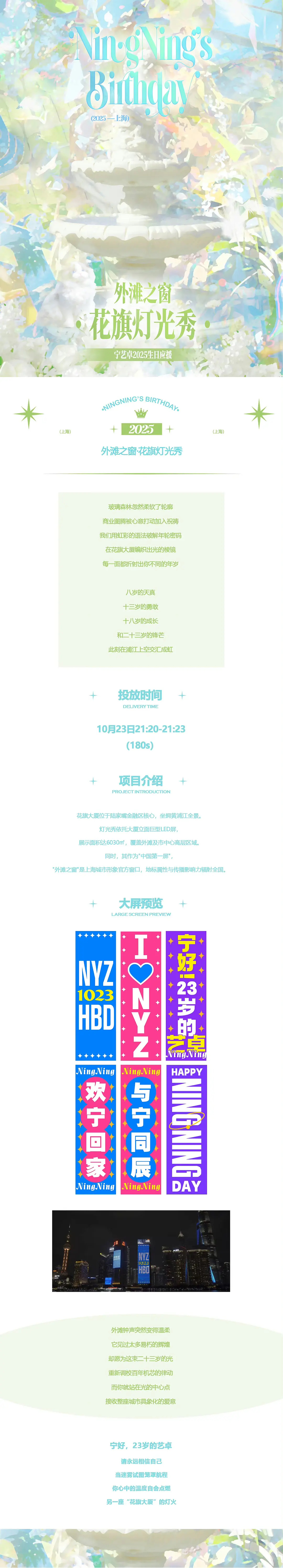宁艺卓这次生日粉丝应援定了全娱首次冠名邮轮应援和花旗三分钟灯光秀[震惊]