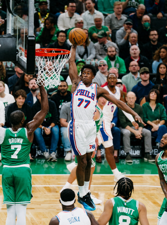 费城76人迎来了新赛季NBA常规赛的首场比赛,他们在客场117-116击败了波士顿凯尔特人队。 本场比赛,76人队今年选中的探花秀VJ-埃奇库姆表现亮眼,他首发出场42分12秒,26投13中得到了全场第二高的34分(仅次于马克西的40分),外加7篮板3助攻1抢断,三分球13中5,罚球6中3,出现了2次失误1次犯规,正负值-2。 值得一提的是,埃奇库姆揭幕战就砍下30+得分,至此,他成为了21世纪以来首位达成此成就的新秀;同时他也超越了1996年76人的艾弗森(30分),刷新了76人队史新秀首秀得分的新高。