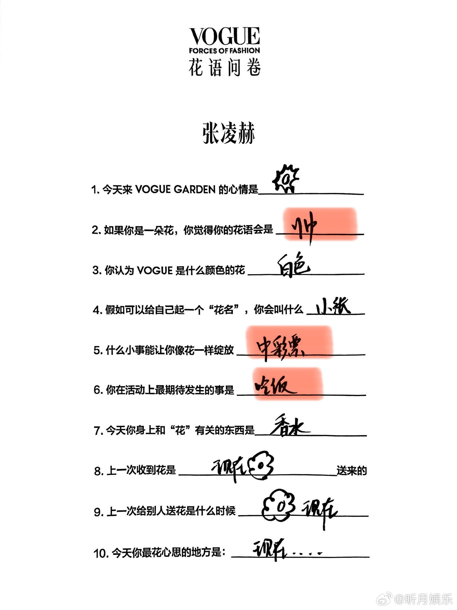 张凌赫说中彩票可以让我像花一样绽放 VOGUE花语问卷的笑点好密集😂特别是张凌赫:中彩票可以让我像花一样绽放[哈哈] 张凌赫VOGUE花语问卷