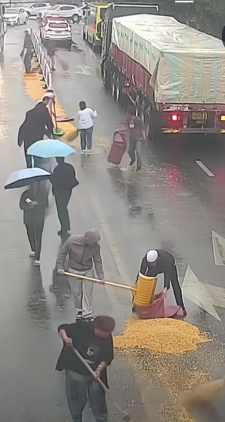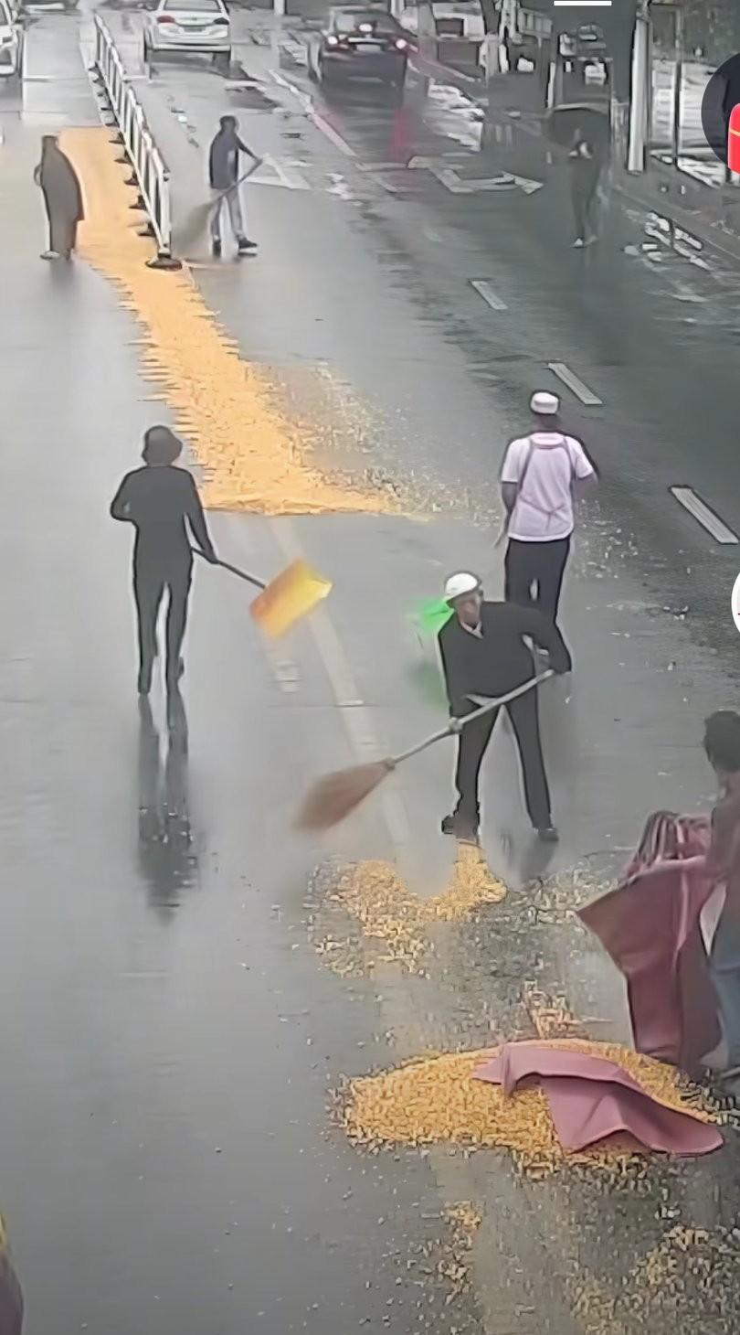 刚刷到的一个视频,在新疆生产建设兵团十二师三坪农场,一辆满载玉米粒的货车,行驶途中玉米粒不慎散落一地。 让人感动的是热心路人纷纷赶来,自发地帮忙收拾。交警也在一旁维持秩序。大家齐心协力,快速清理路面,把玉米粒转移到安全地带。 A网友:不是货品价值的事,这是粮食,救命的。咱们中国人能吃饱饭才是最近三四十年的事!“世界破破烂烂,但总有人缝缝补补”此刻形象化了。 B网友: 她们真好没去抢,还帮忙。这一刻,中国人刻在骨子里对粮食的珍惜和尊重体现出来了! C网友:大家发现没?人一旦做了好事之后,心情特别愉悦,以后做什么都一顺百顺!万事顺意! 洒落的玉米让驾驶员心里好酸,看到这么多好心人齐心帮忙,心里肯定暖暖的。都说“一方有难,八方支援”,当今的社会还是好心人多,在这件事上体现得淋漓尽致。这就是咱朴实善良的中国人,在别人遇到困难时,毫不犹豫地伸出援手。为这些好心人点赞!