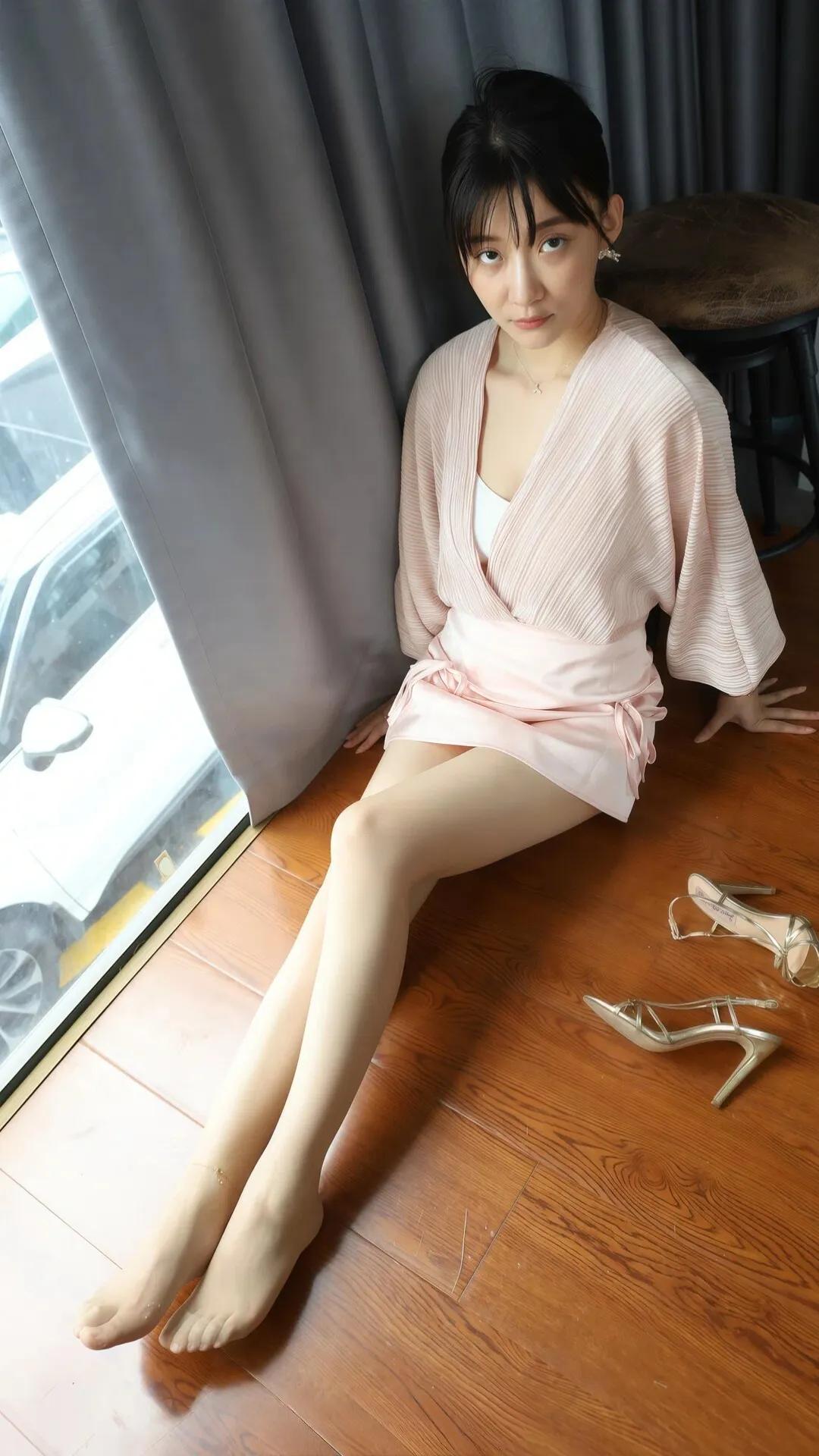 气质美女脱下高跟鞋,放松一下小脚,这腿真白又嫩又长啊。高跟鞋女 高跟单鞋御姐