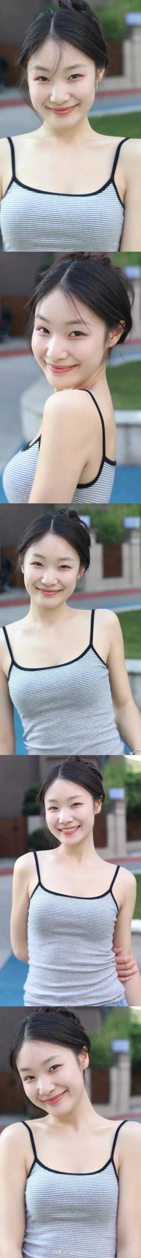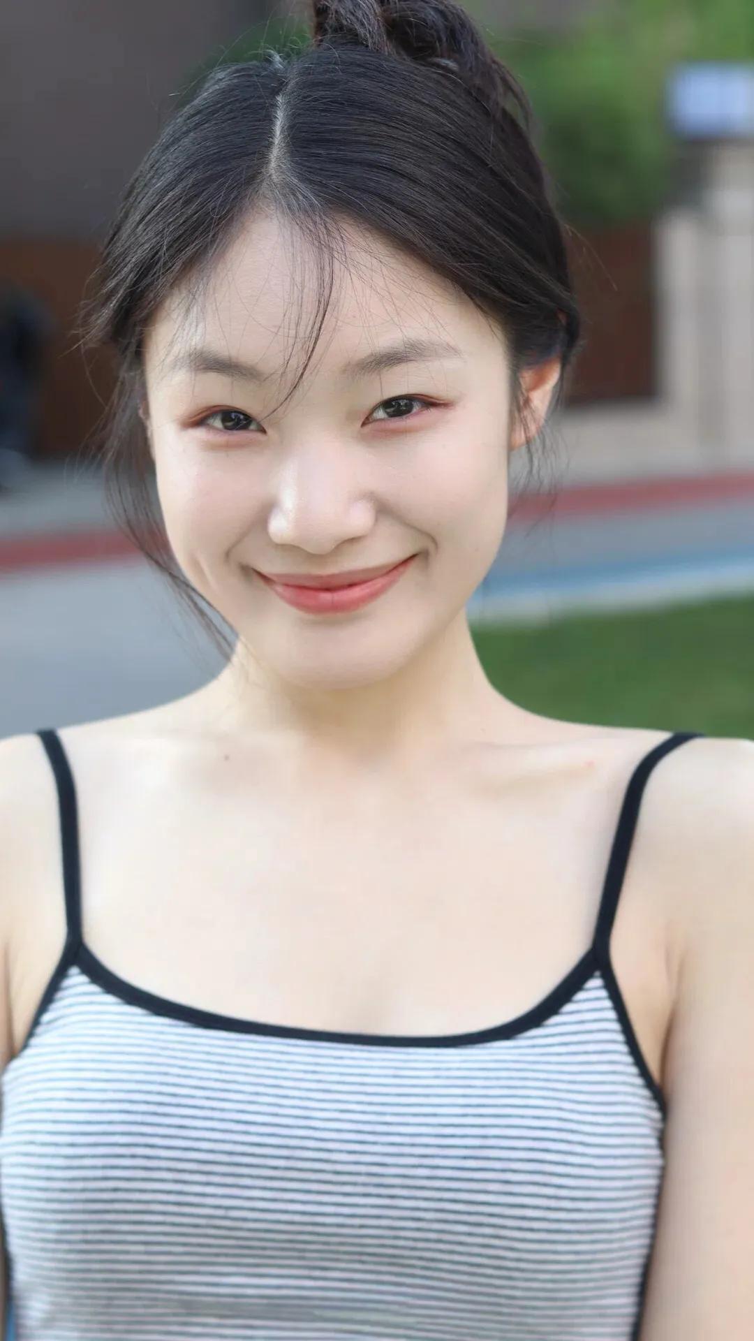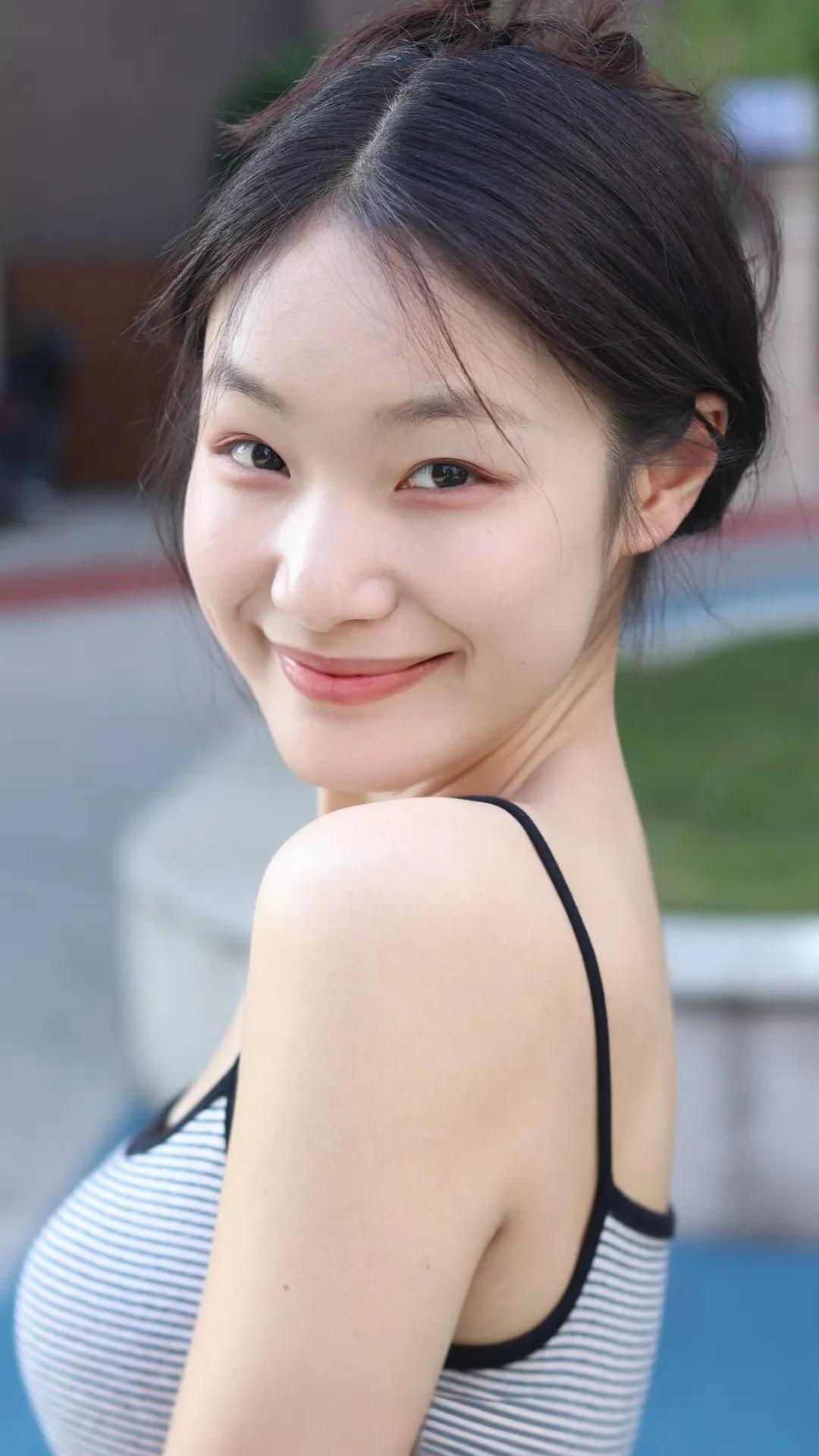 夏日清新穿搭,条纹背心搭配自然微笑,元气满满的一天!🌞👗😊简约吊带穿搭吊